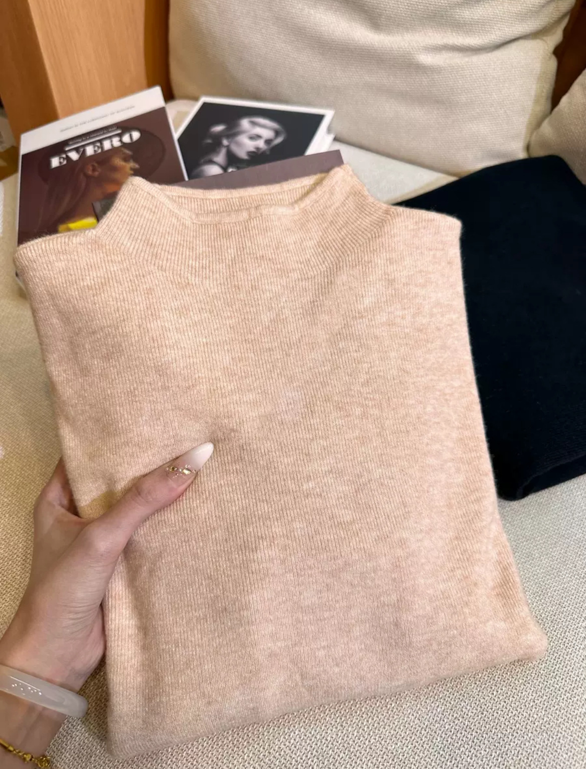 秋冬小立领奶fufu软糯打底针织衫大码胖mm女毛衣韩版简约内搭上衣