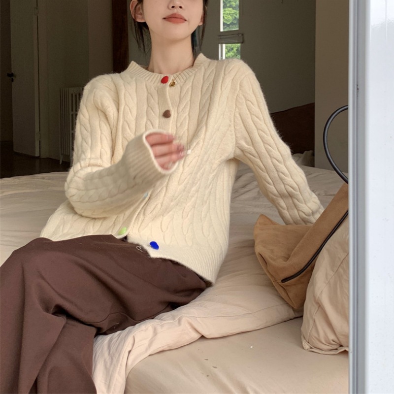 彩虹扣毛衣外套女韩系甜美学院风外搭春秋季宽松软糯上衣针织开衫