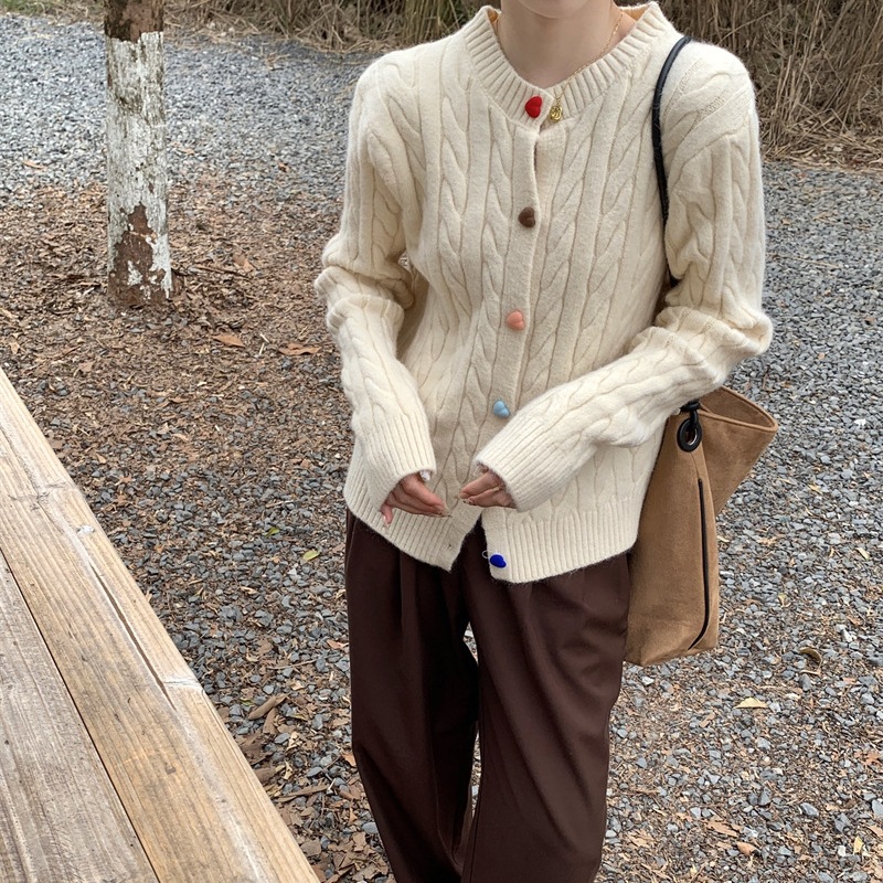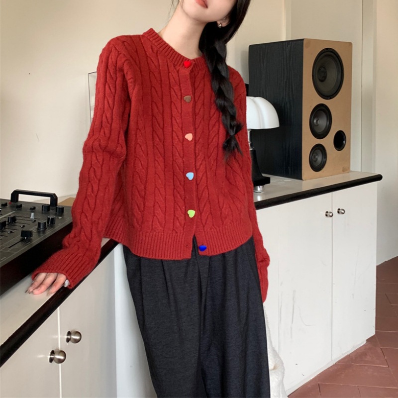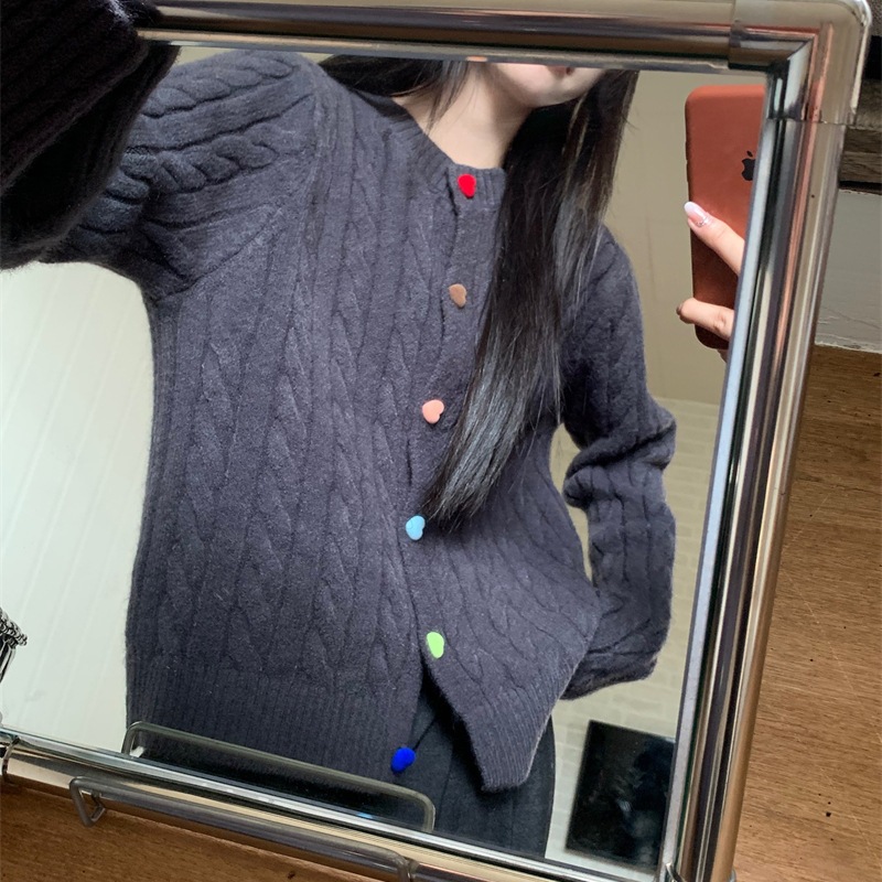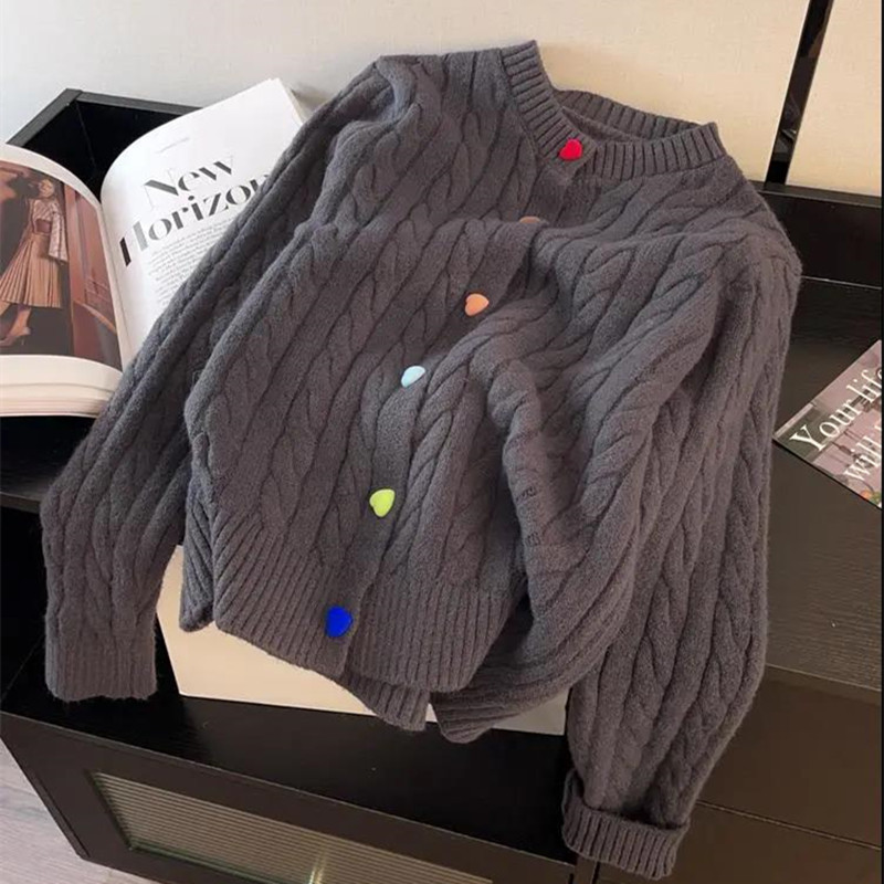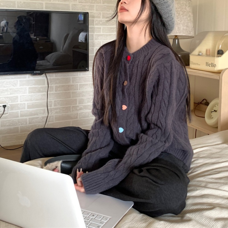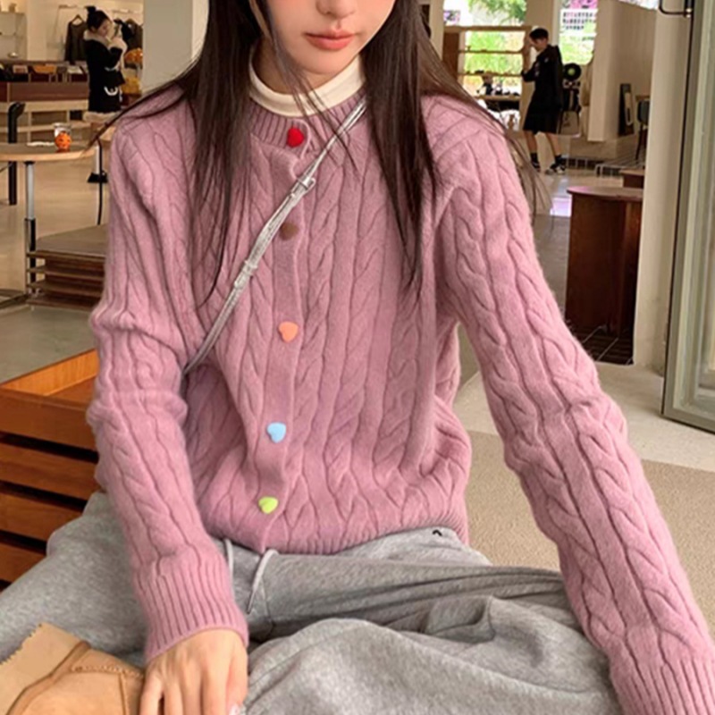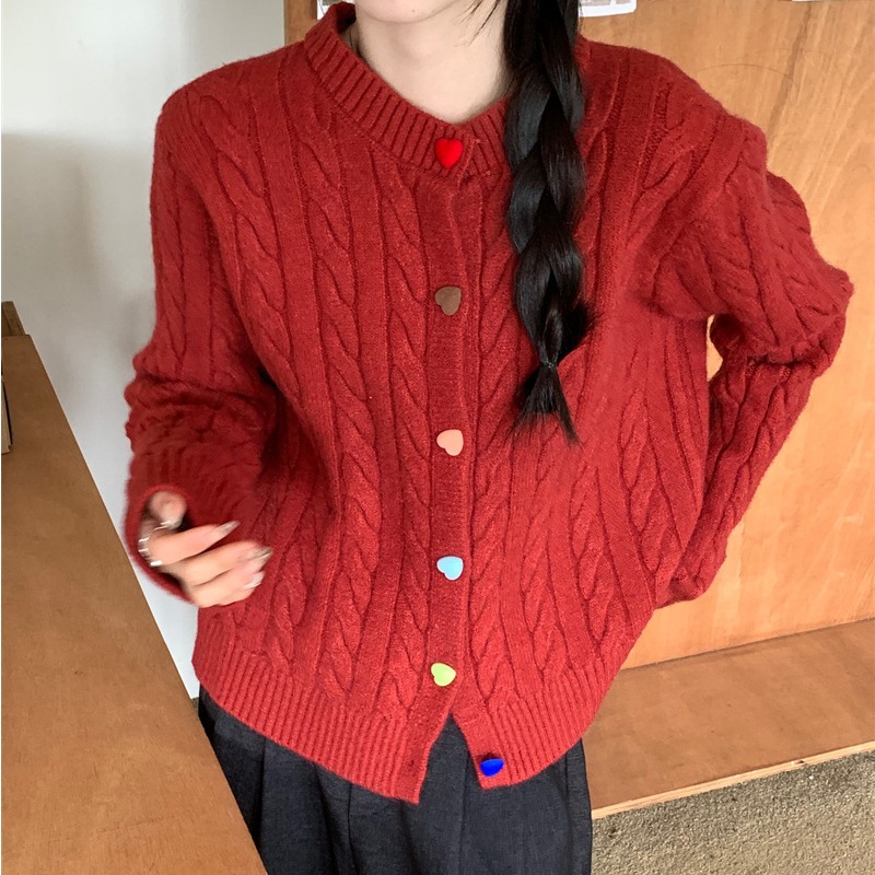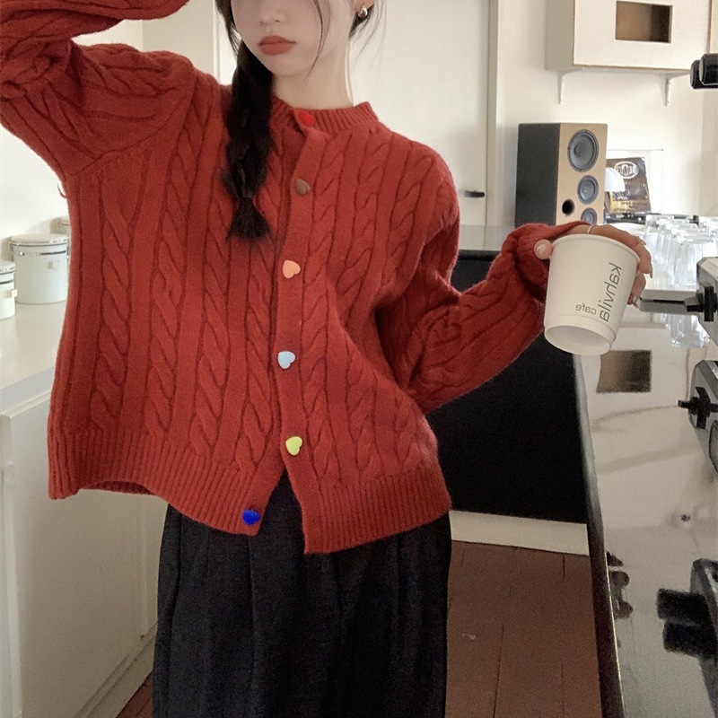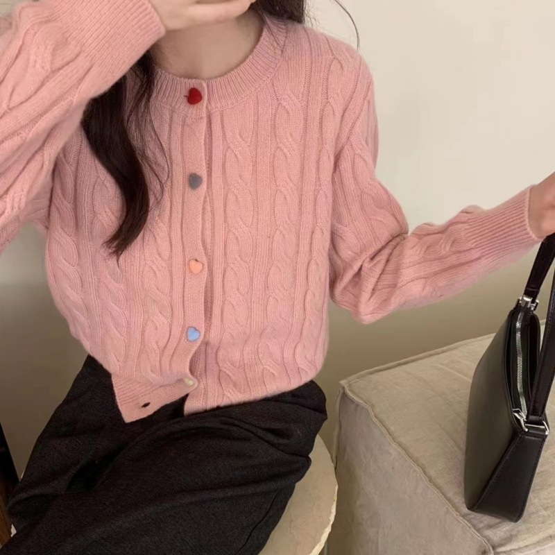 韩系2025秋冬甜美减龄爱心扣针织开衫女圆领新款百搭毛衣外套百搭