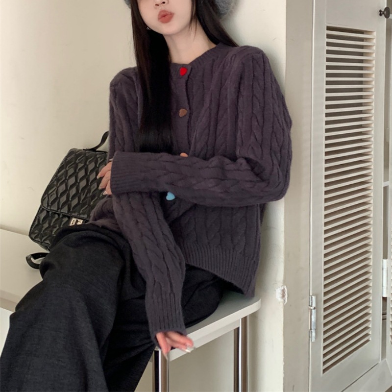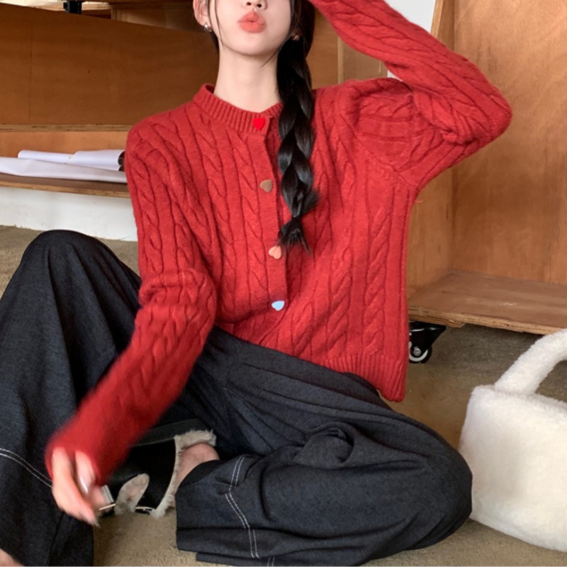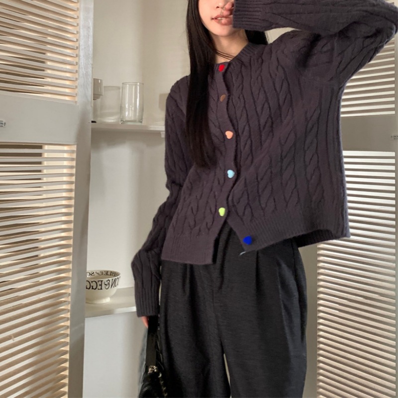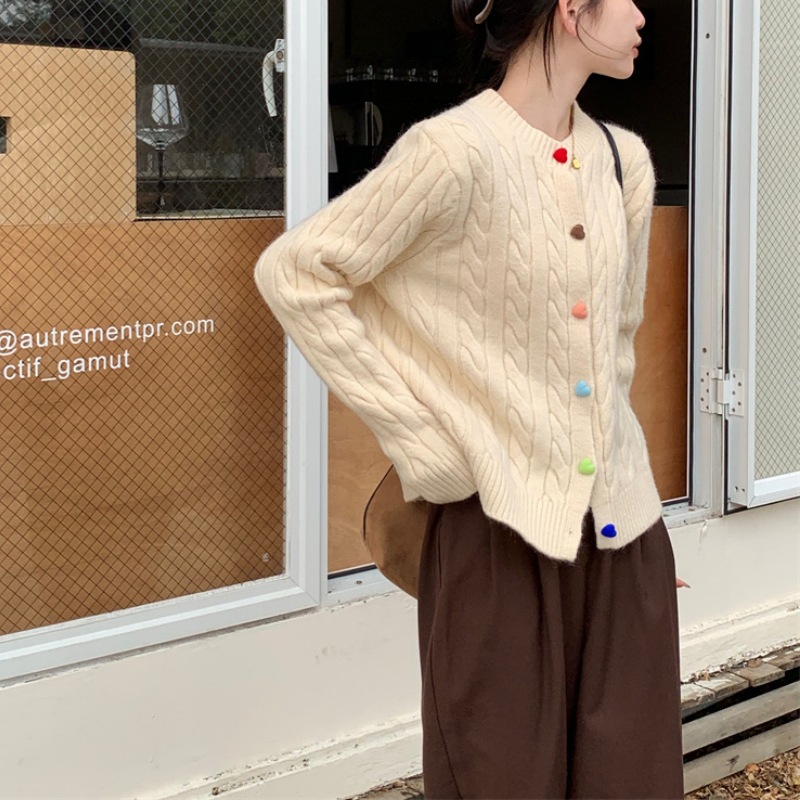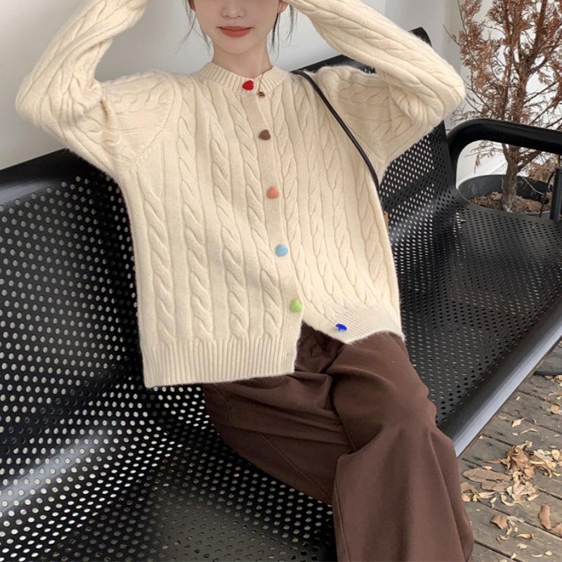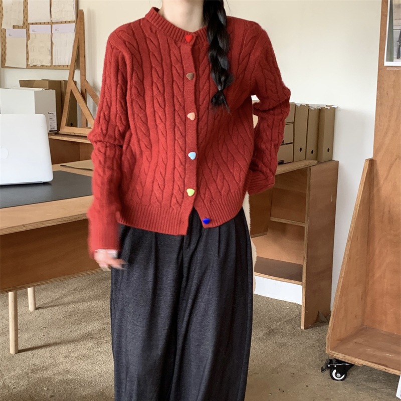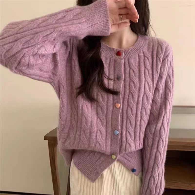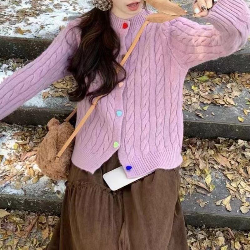 韩系2025秋冬甜美减龄爱心扣针织开衫女圆领新款百搭毛衣外套百搭