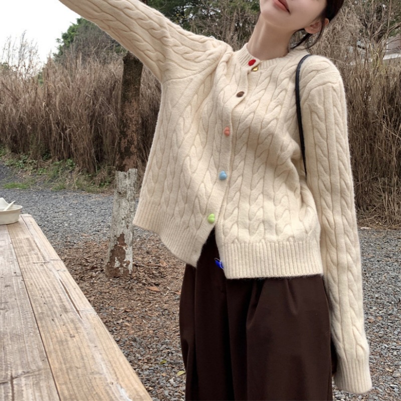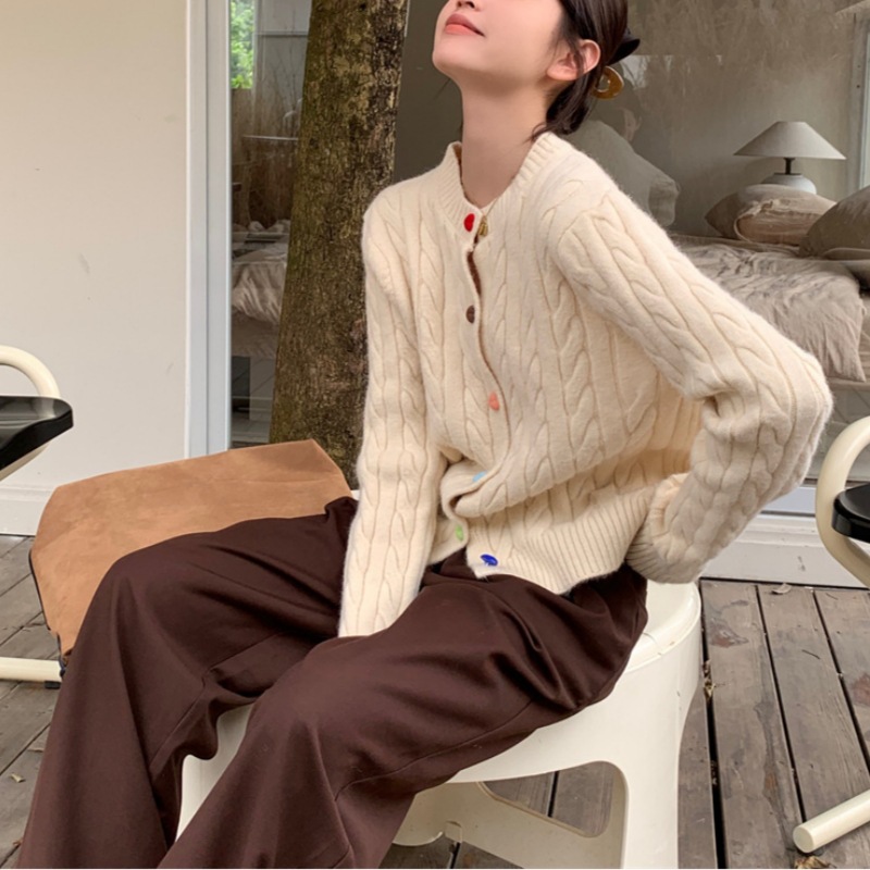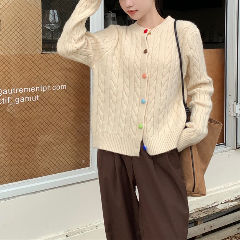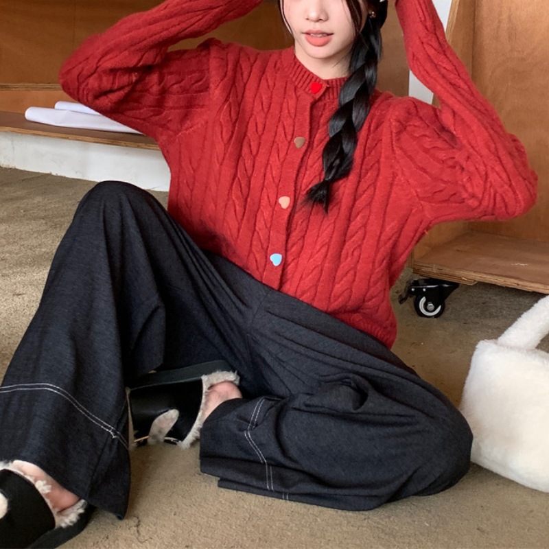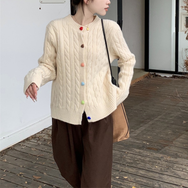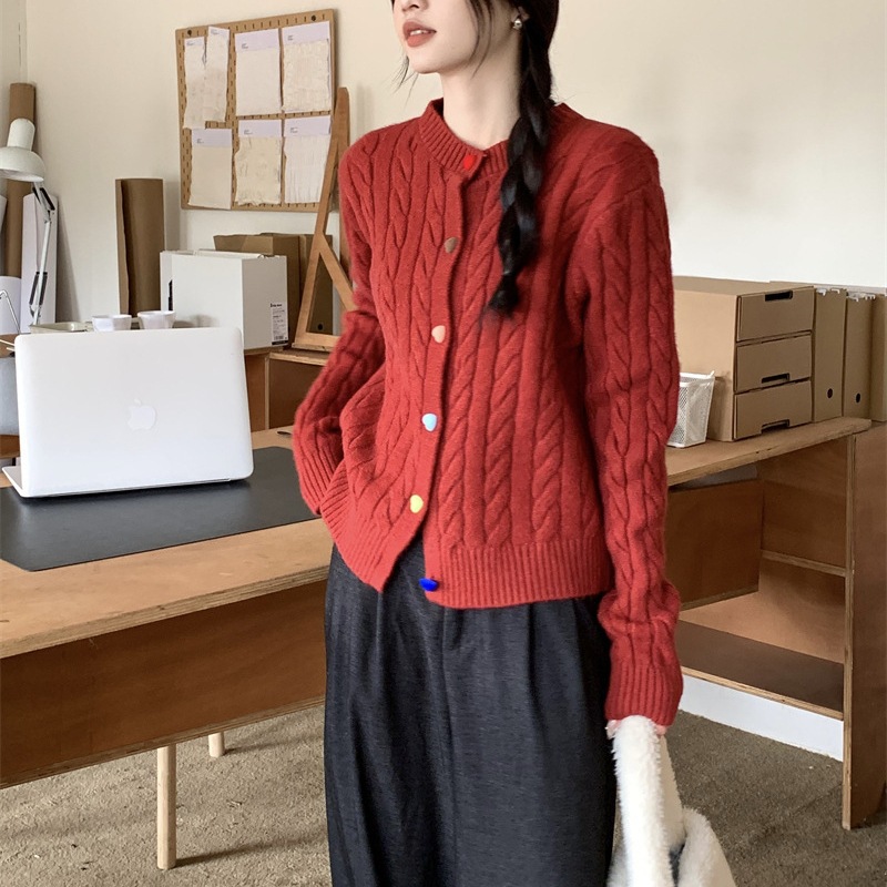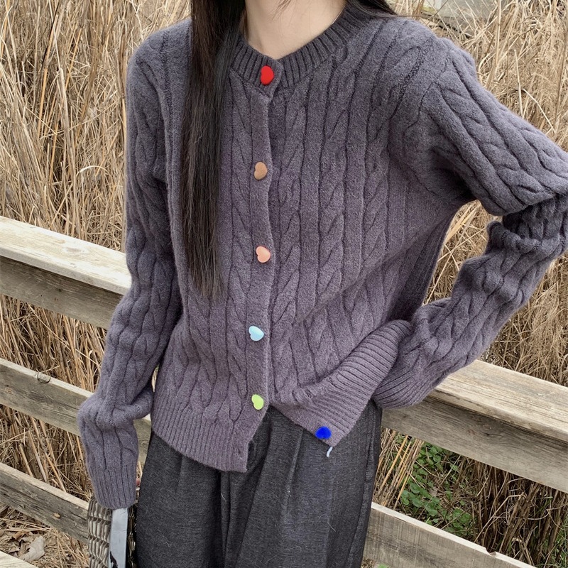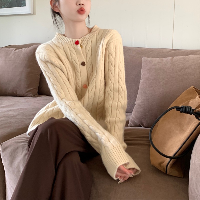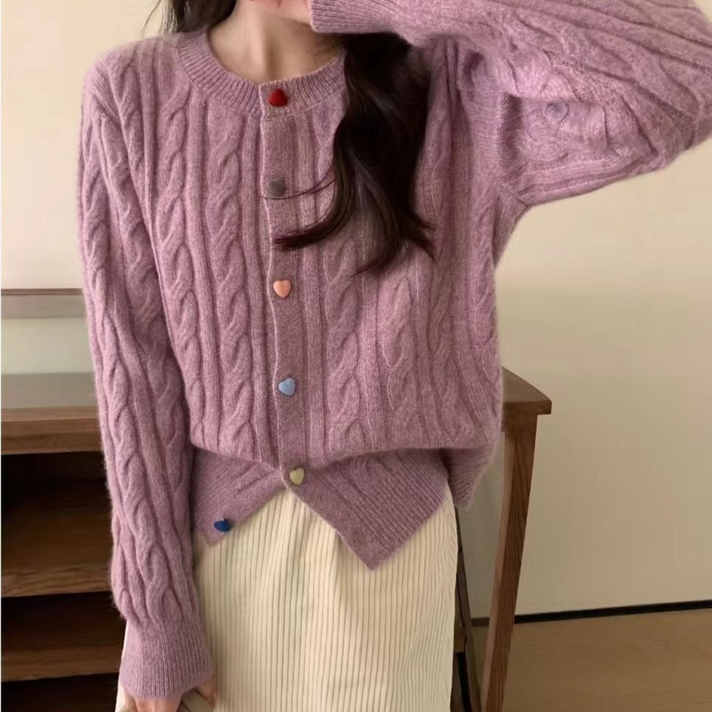 韩系2025秋冬甜美减龄爱心扣针织开衫女圆领新款百搭毛衣外套百搭