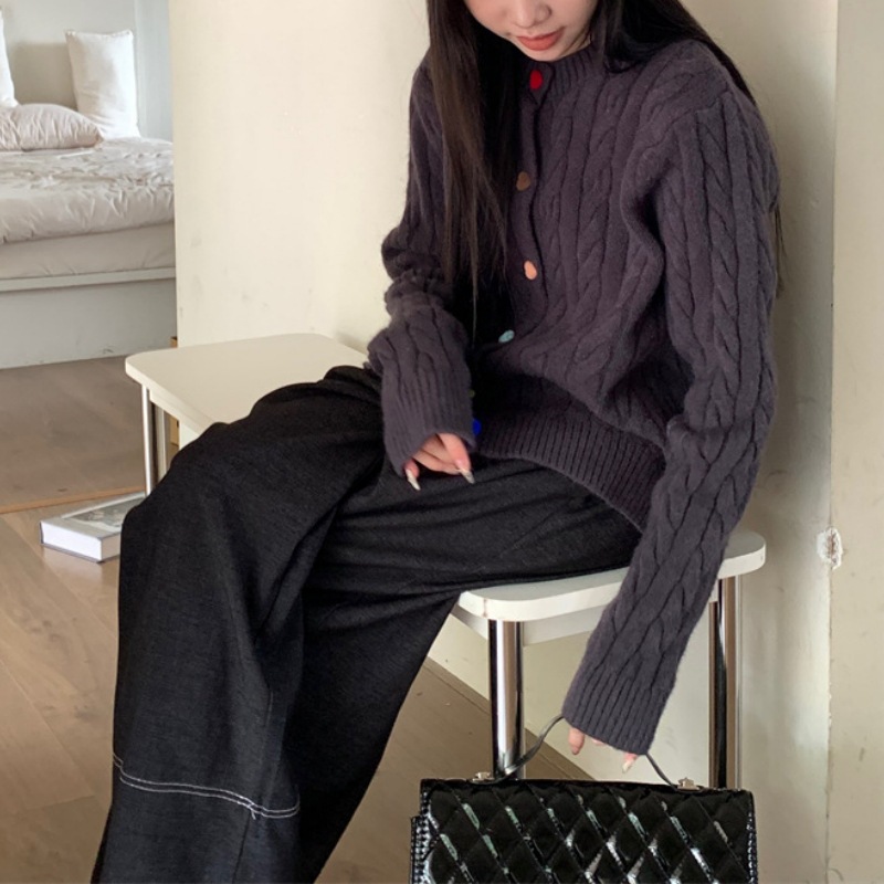 韩版针织开衫女秋冬新款高级感宽松轻奢休闲软糯长袖圆领毛衣外套