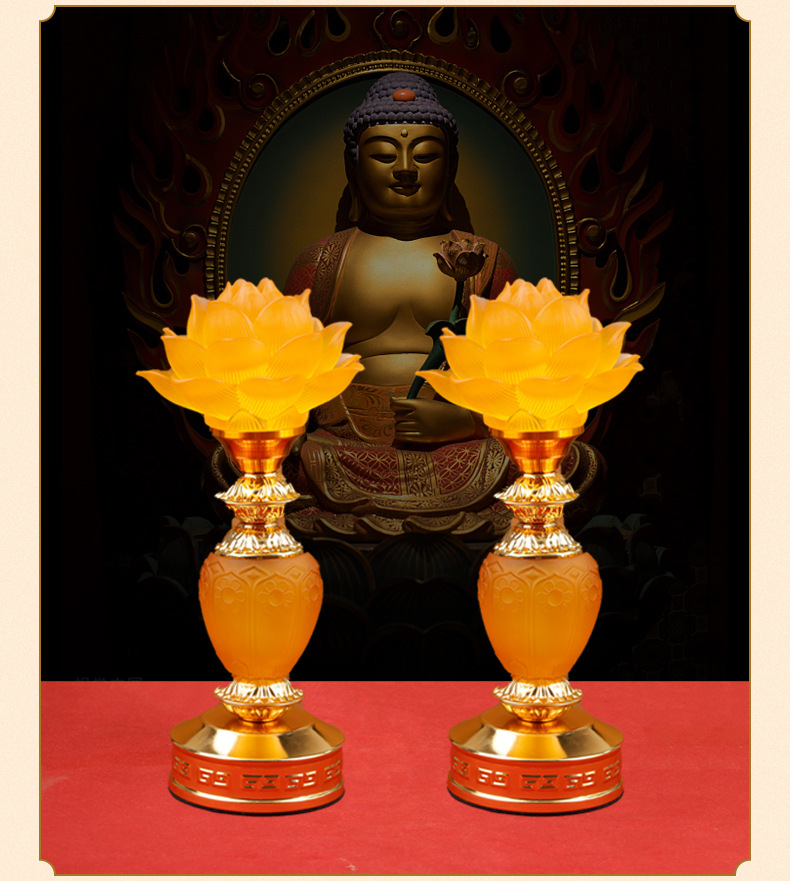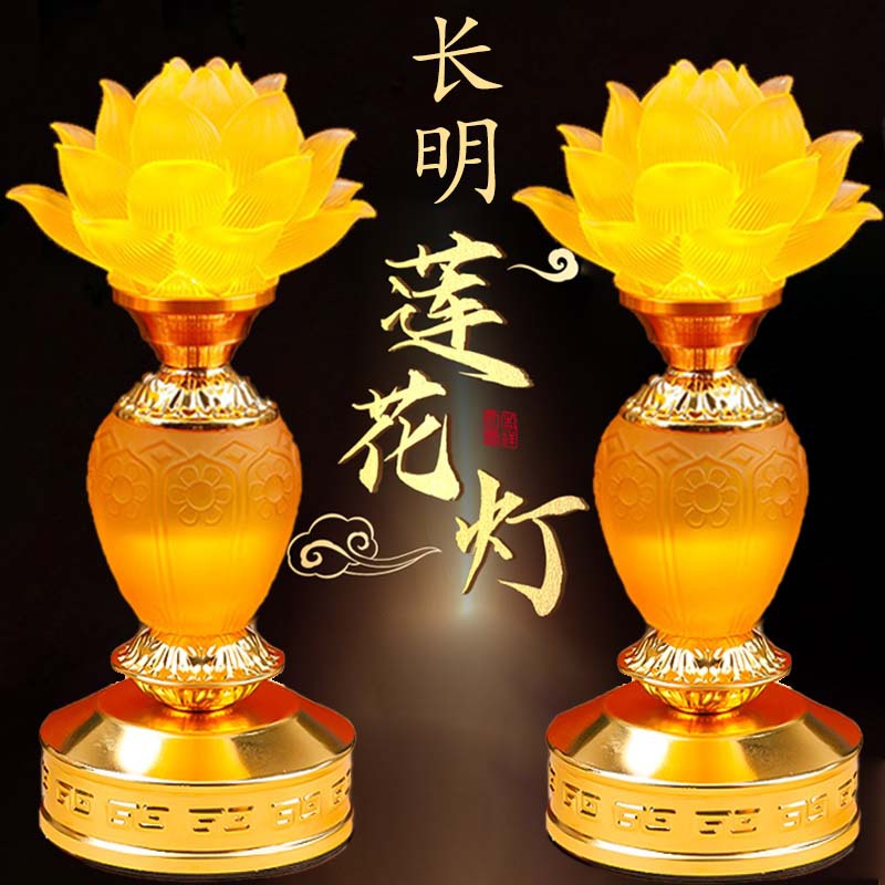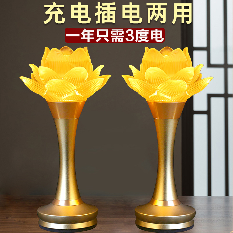 充電蓮花灯led長明灯仏前供灯家庭用電気菩薩対瑠璃仏堂神灯
