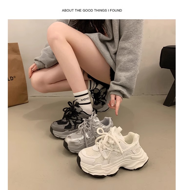 人気の厚底プラットフォームダッドシューズ女性用夏小身長増加2025新しいメッシュ通気性カジュアルスポーツシューズ