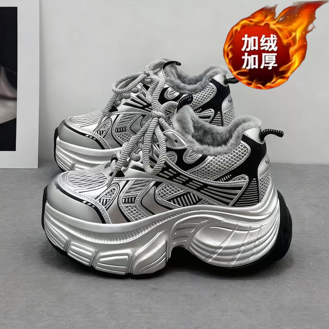 加绒新款老爹鞋女2025冬季学生运动跑步鞋休闲鞋厚底JC8851-1