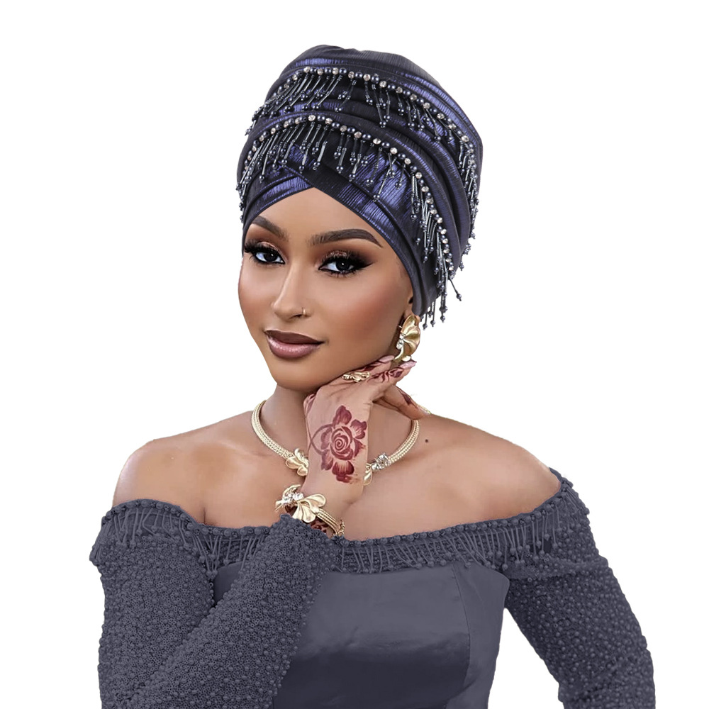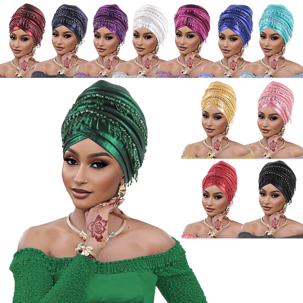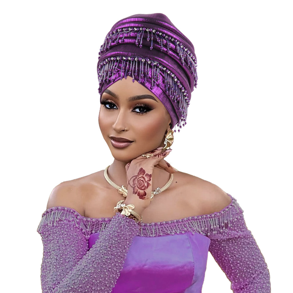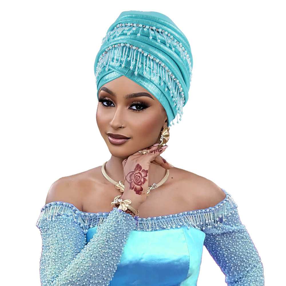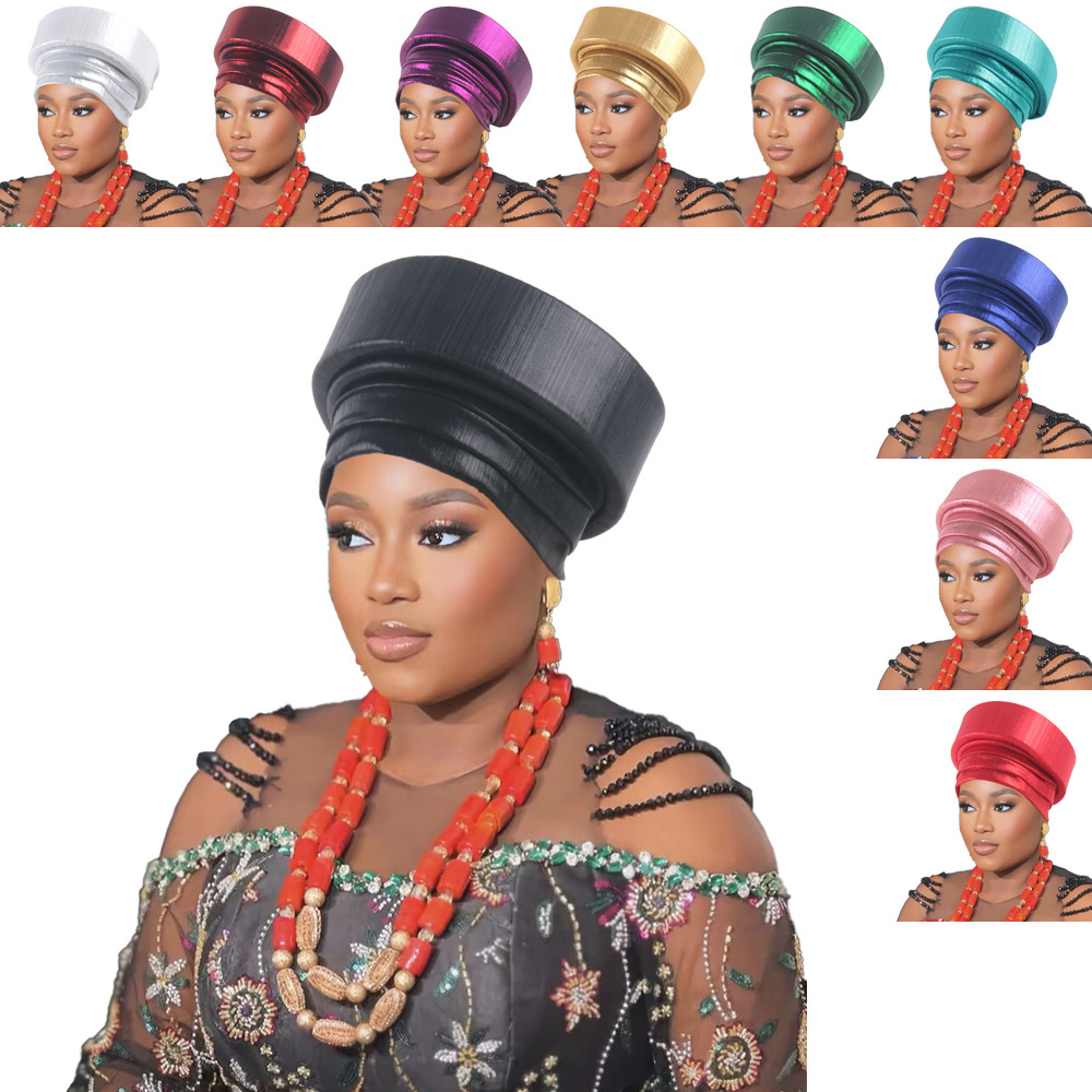 外国貿易の新型粘着ドリル重工亮糸積層包帯ナイジェリア結婚式パーティーauto gel包頭帽子