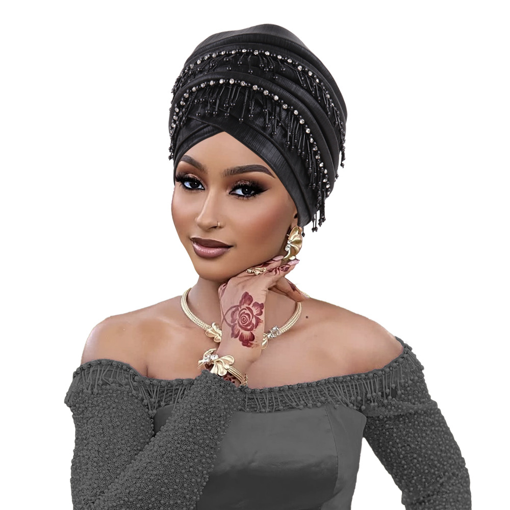 亚马逊速卖通新款美人条五根海绵流苏包头帽头巾帽非洲帽