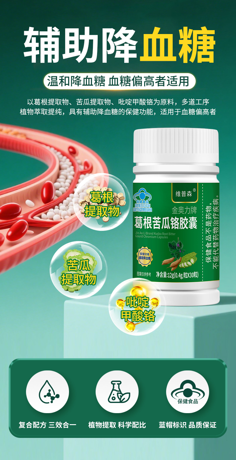 厂家批发葛根苦瓜铬胶囊辅助降血糖偏高者男女正品现货一件代发