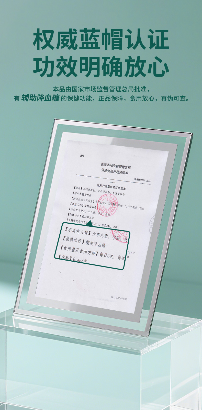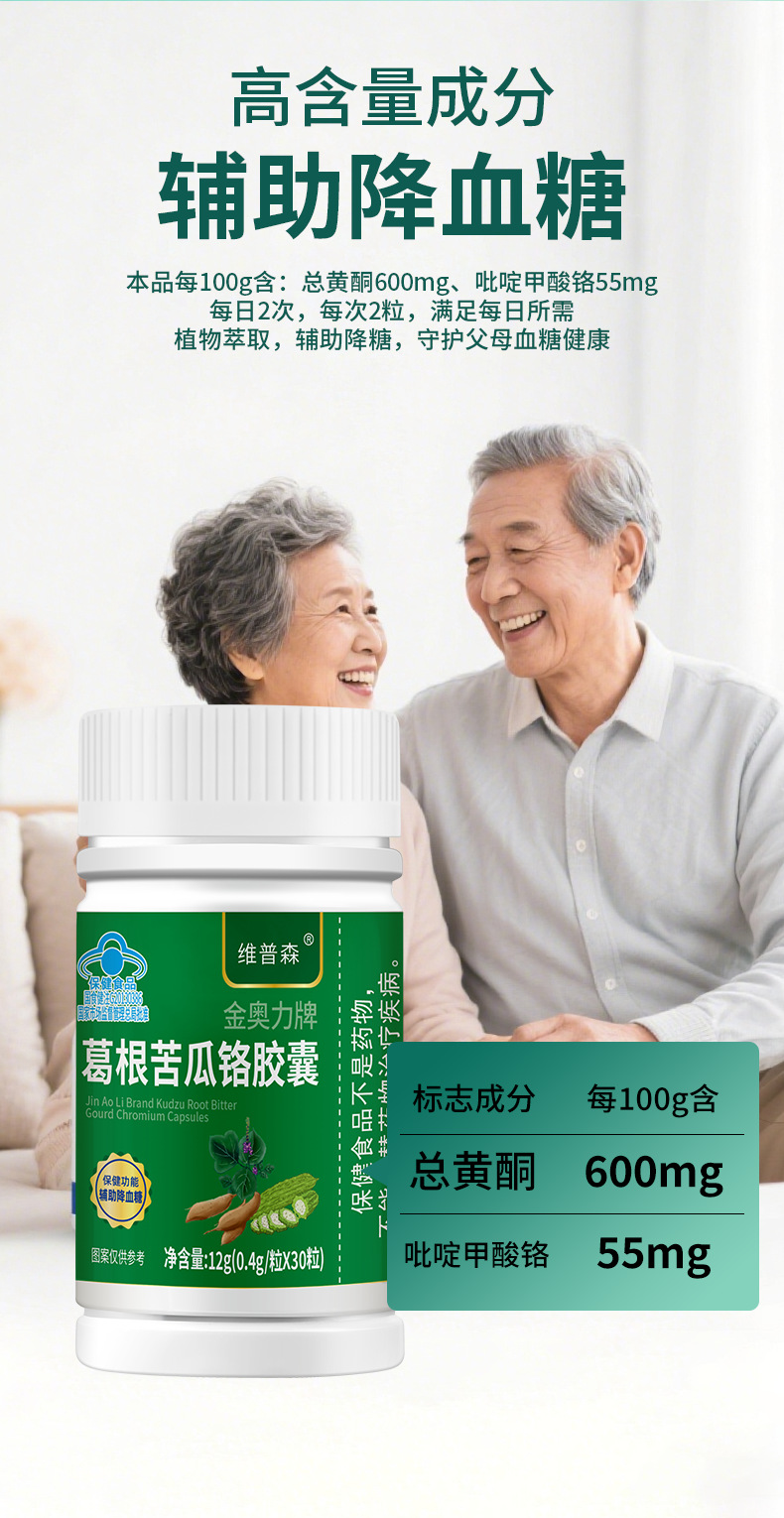 主要原料 葛根提取物、苦瓜提取物、吡啶甲酸铬