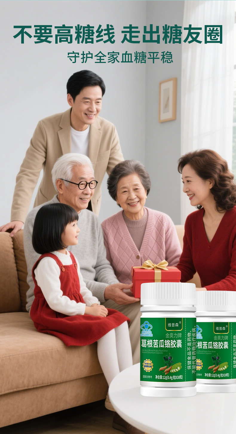 恩威万葛根苦瓜铬胶囊60粒辅助降血糖胶囊中老年成人高糖保健