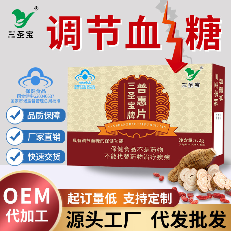 三圣宝牌普惠片中老年人高血糖偏高糖友调节血糖中药材蓝帽保健品