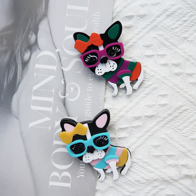 新しい 2 色のパグ犬アクリルブローチファッショナブルな動物ピン男性と女性のためのハイエンドニッチアクセサリー