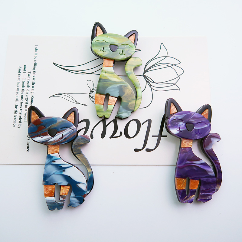 国境を越えた新型かわいい猫動物ブローチファッション百合アクリル胸花女性服飾りピン
