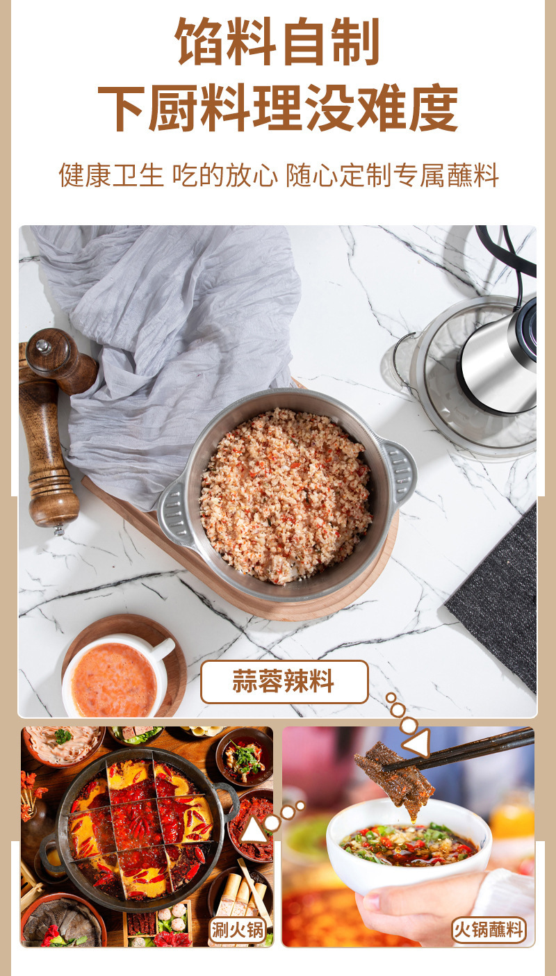 半球绞肉机不锈钢3L小型辅食机碎菜辣椒粉碎机跨境家用电动绞肉机