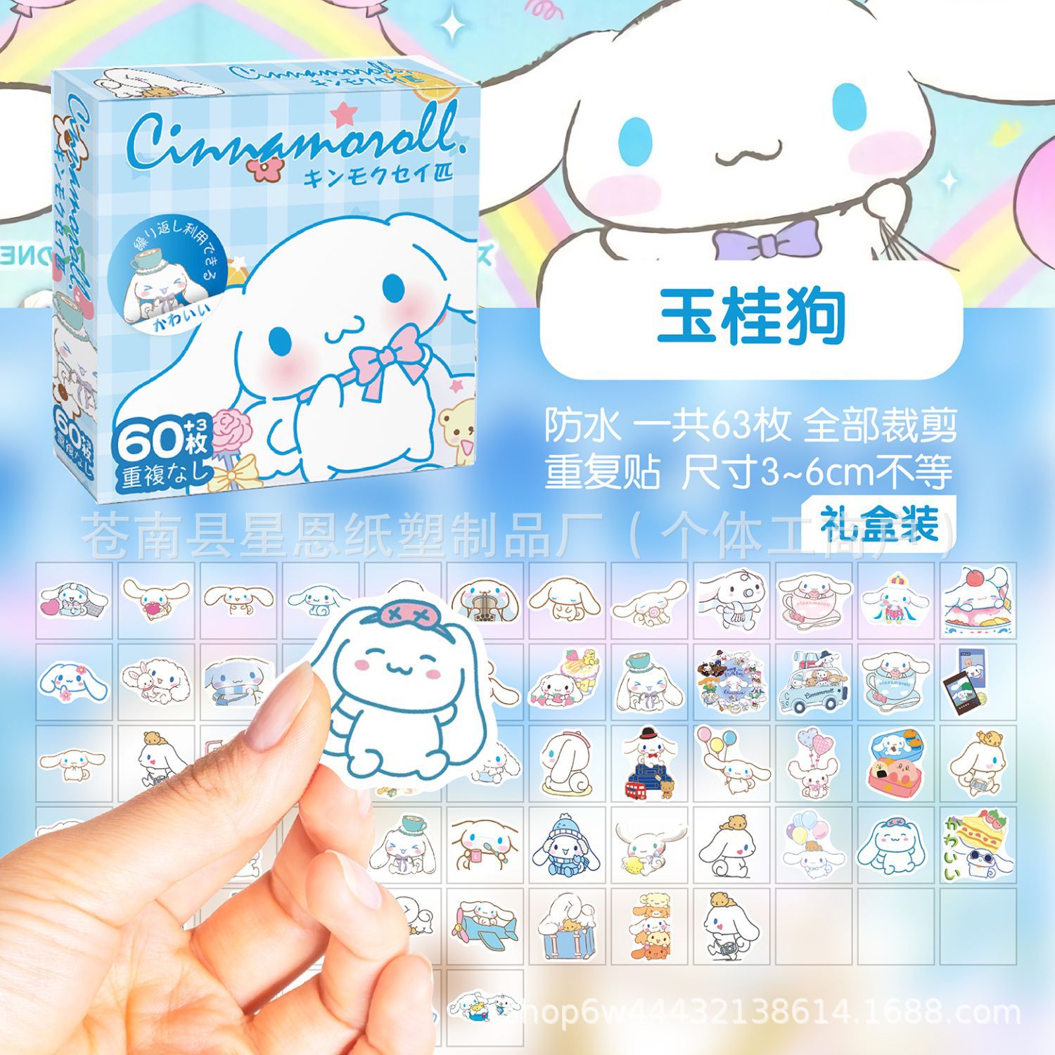 サンリオステッカー60枚、かわいい漫画シナモンドッグステッカー、スーツケースデコレーション、クロスボーダーグカハンドブックステッカー