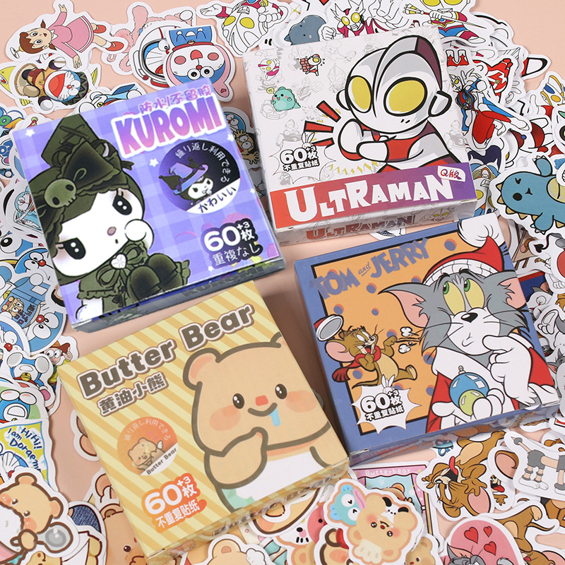 63枚新款动漫贴纸礼盒装猫和老鼠黄油小熊卡通可爱手账防水贴画