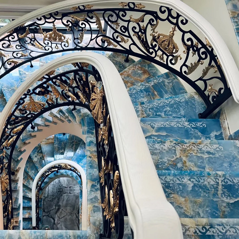天然奢石透光蓝玉大理石高端电梯背景墙玄关踏步楼梯石材小摆件