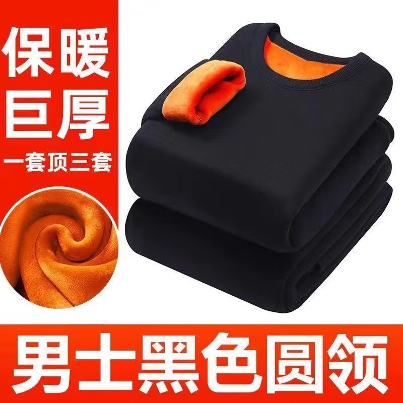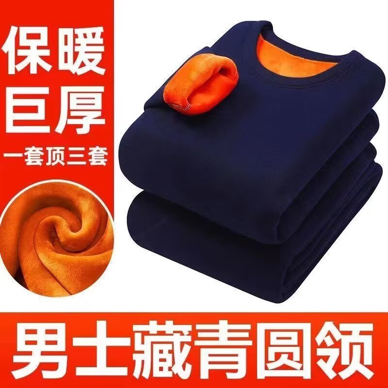 羊羔绒冬季加绒加厚男士圆领卫衣秋冬保暖厚款打底衫内搭男装衣服
