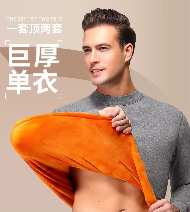 メーカー直販両面徳絨毛長袖tシャツ男性秋冬半高襟シャツ重ポンド内に保温上着を着る