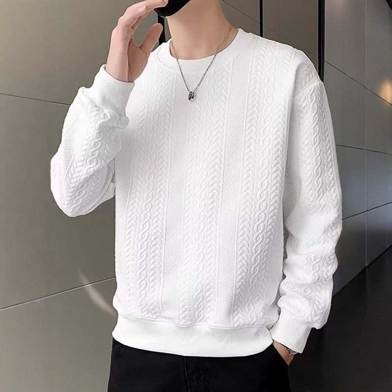 长袖t恤男士春秋季潮牌提花休闲圆领套头卫衣帅气百搭宽松上衣服