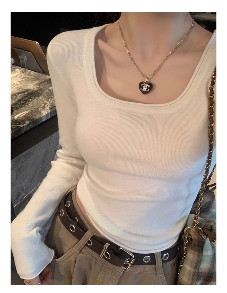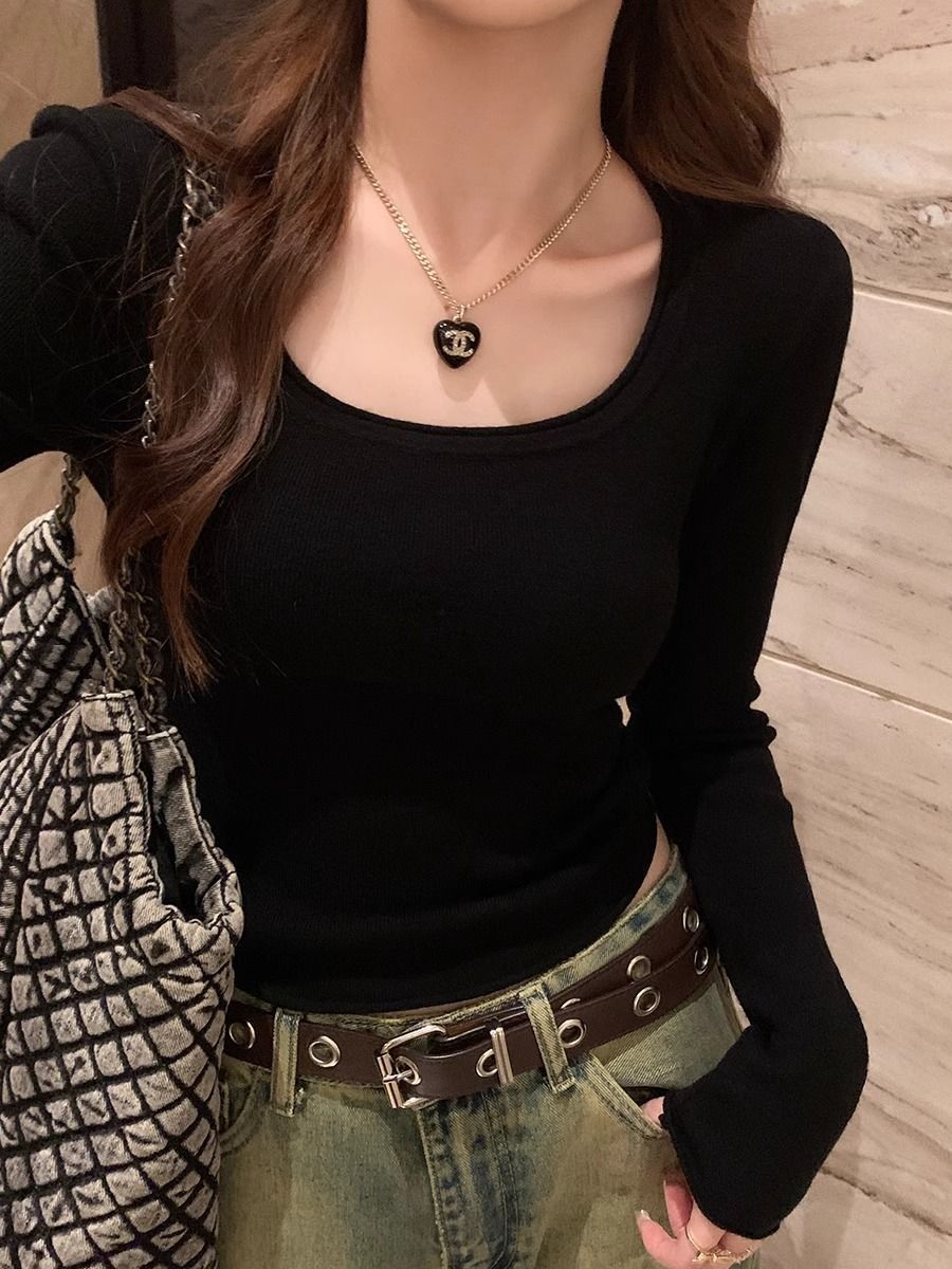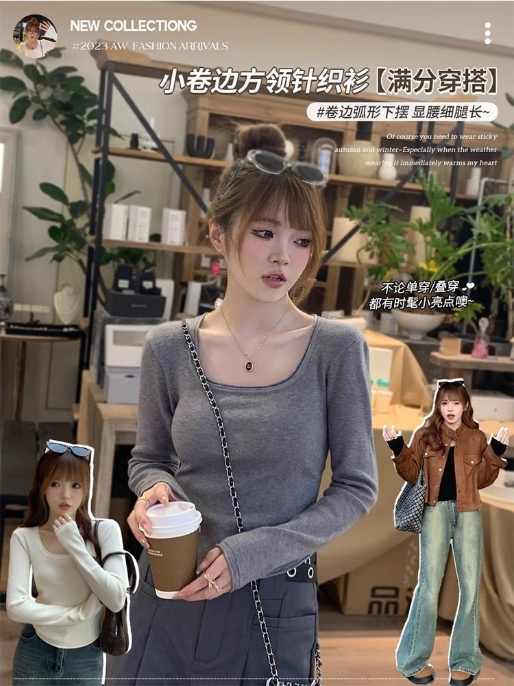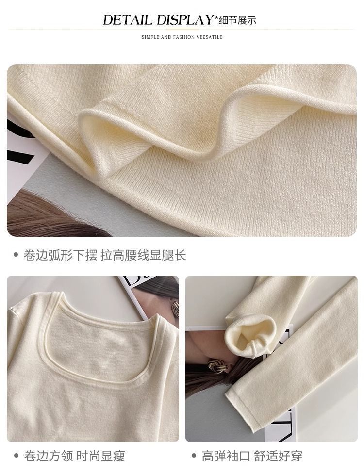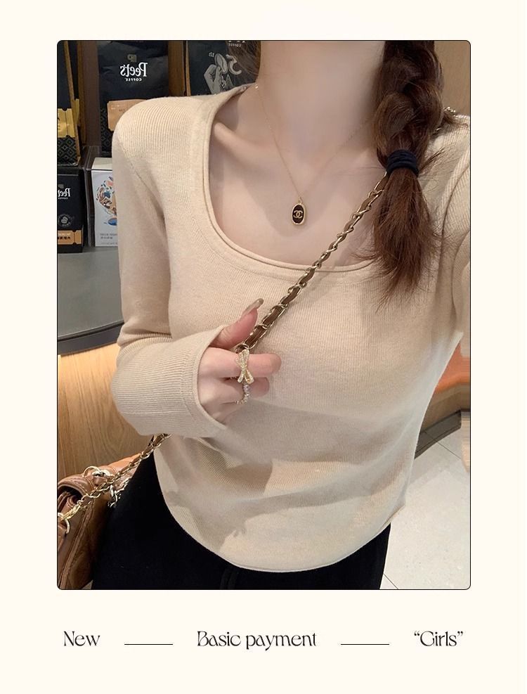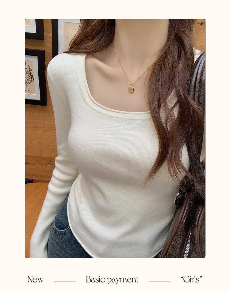 轻熟风高级感方领修身内搭显瘦秋冬针织毛衣女正肩长袖打底衫上衣