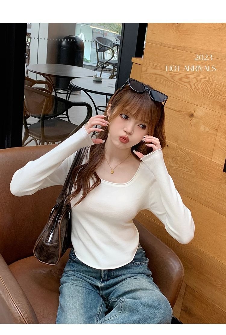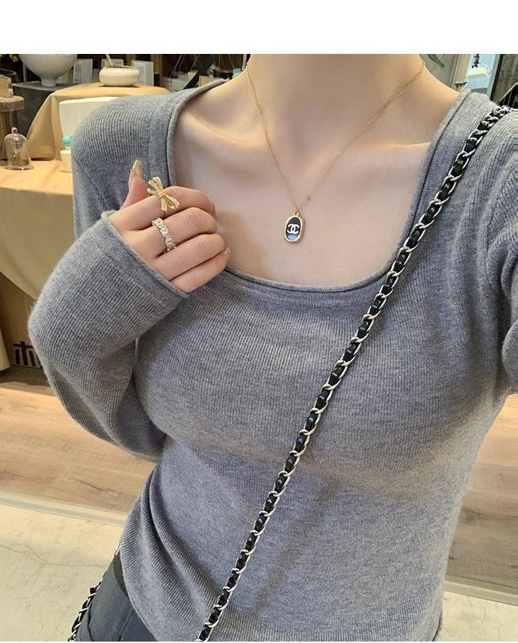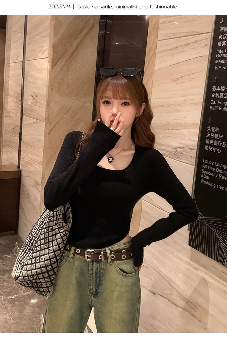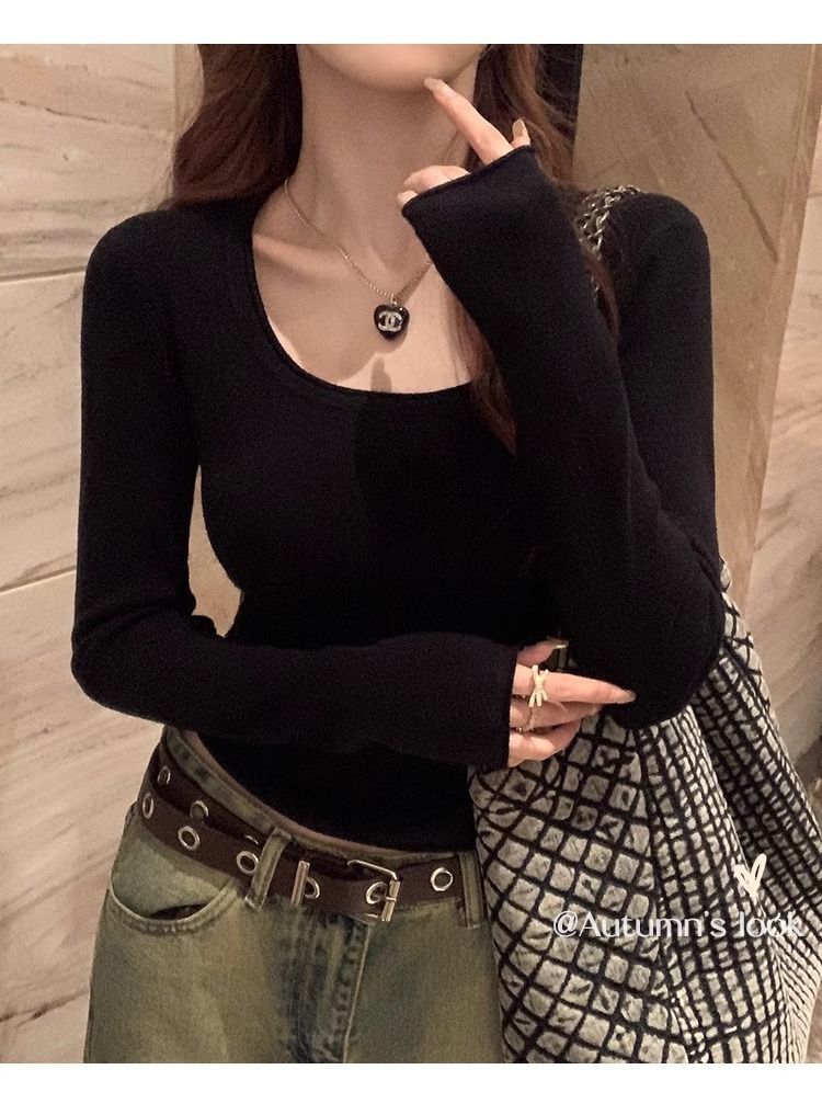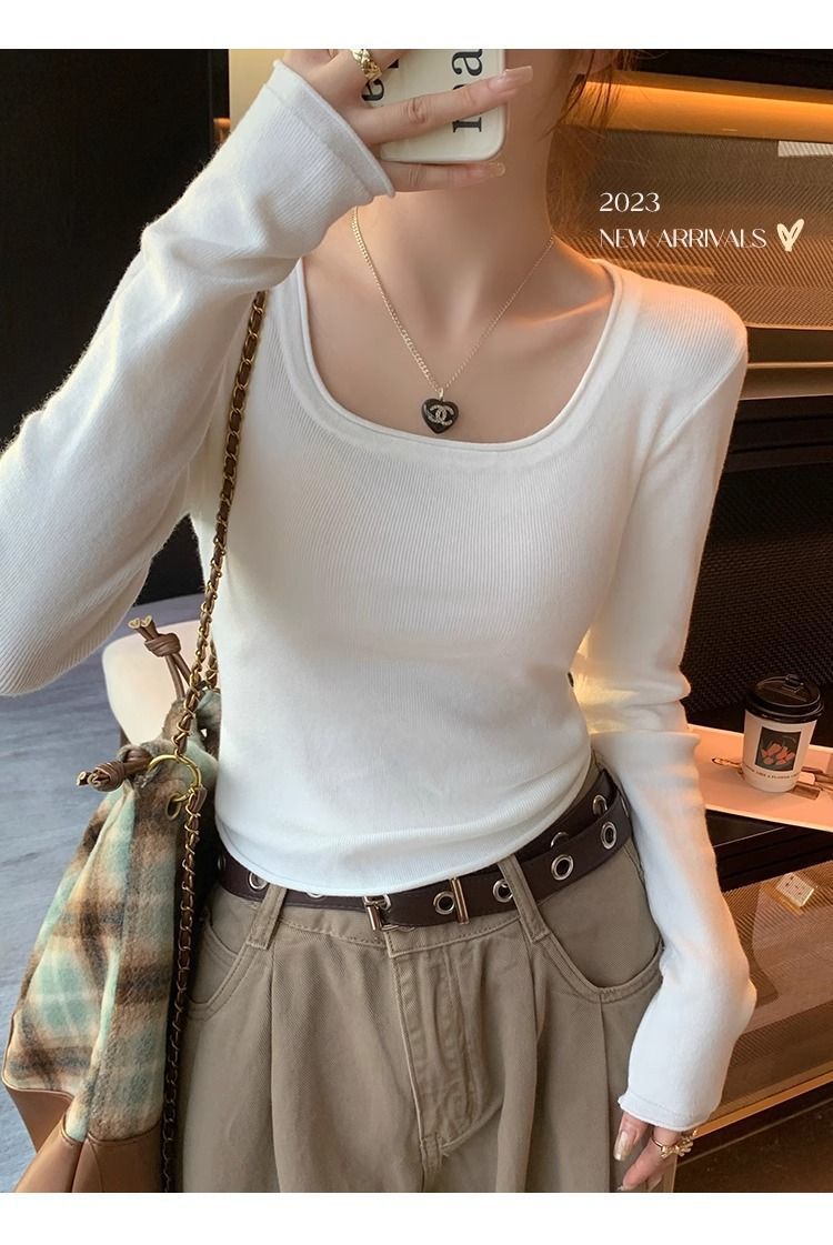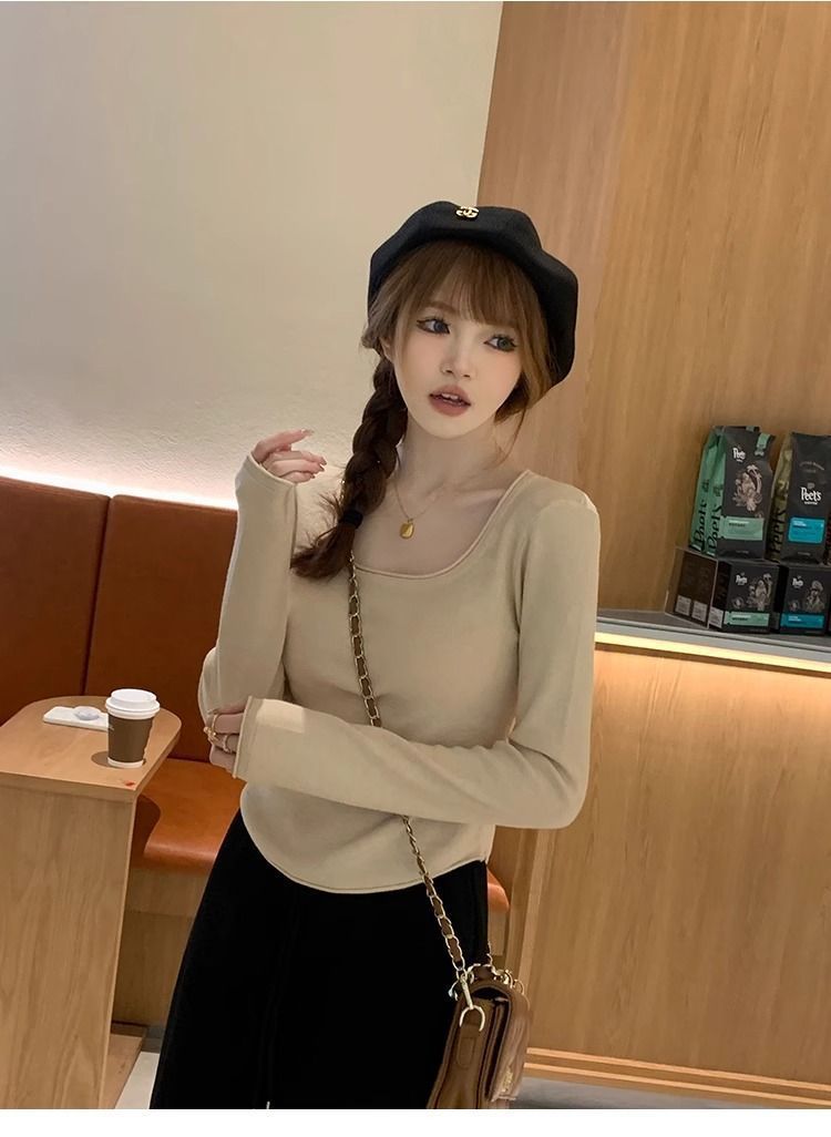 轻熟风高级感方领修身内搭显瘦秋冬针织毛衣女正肩长袖打底衫上衣