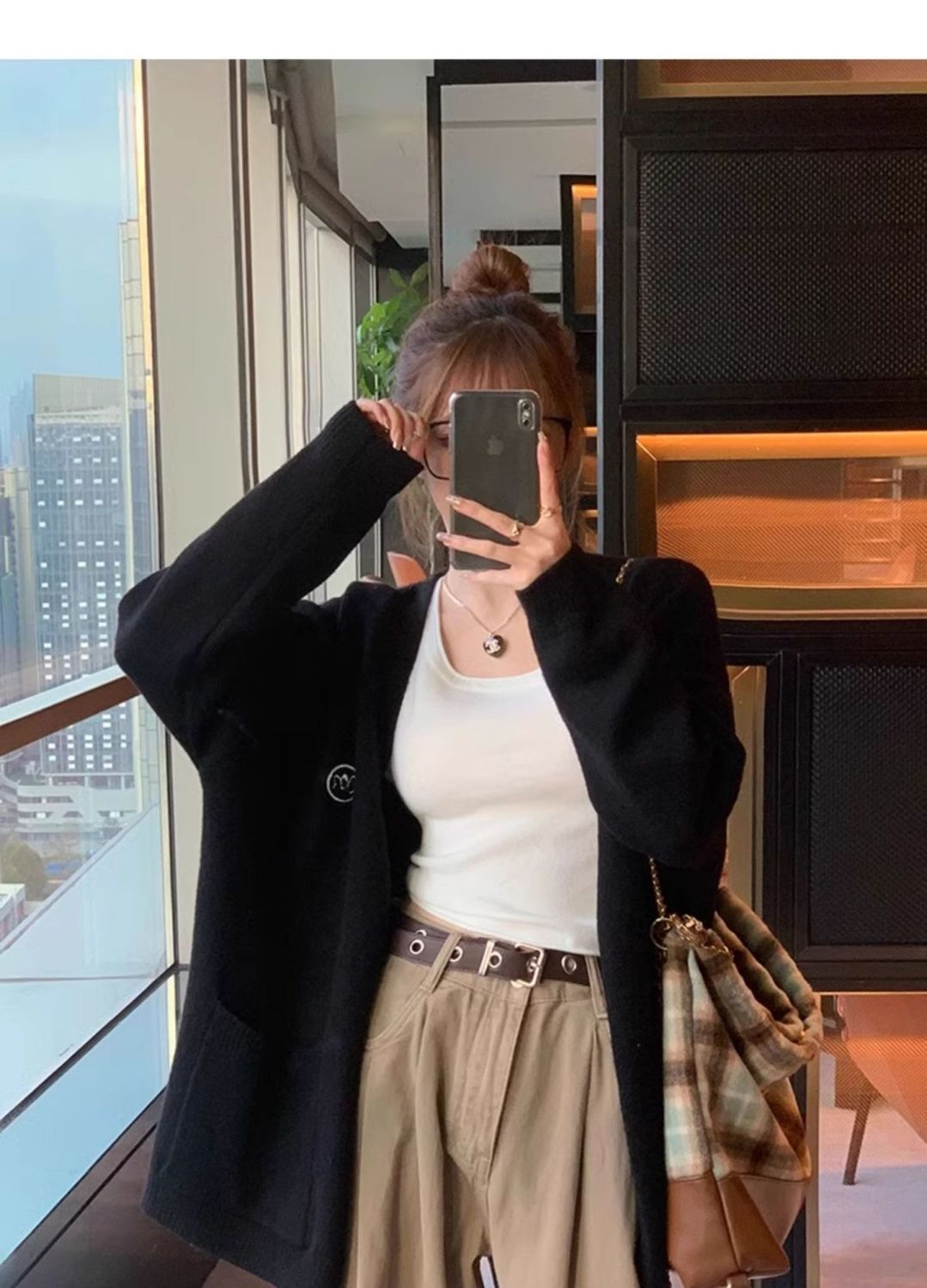 慵懒毛衣女秋冬2025纽扣设计感长袖v领法式针织打底内搭低领上衣