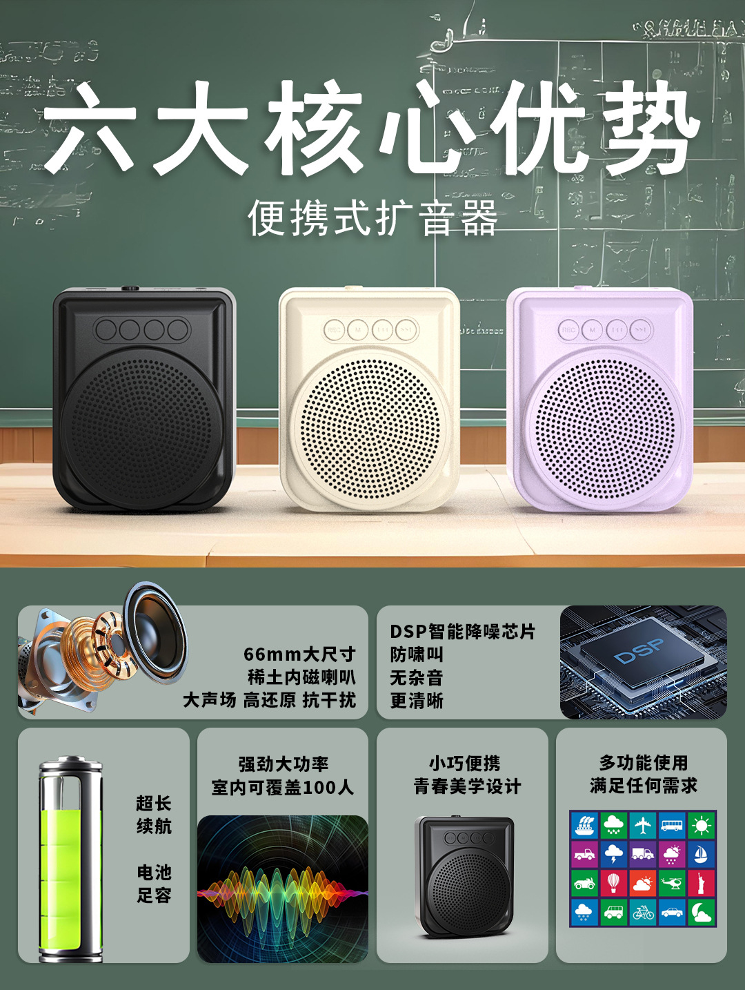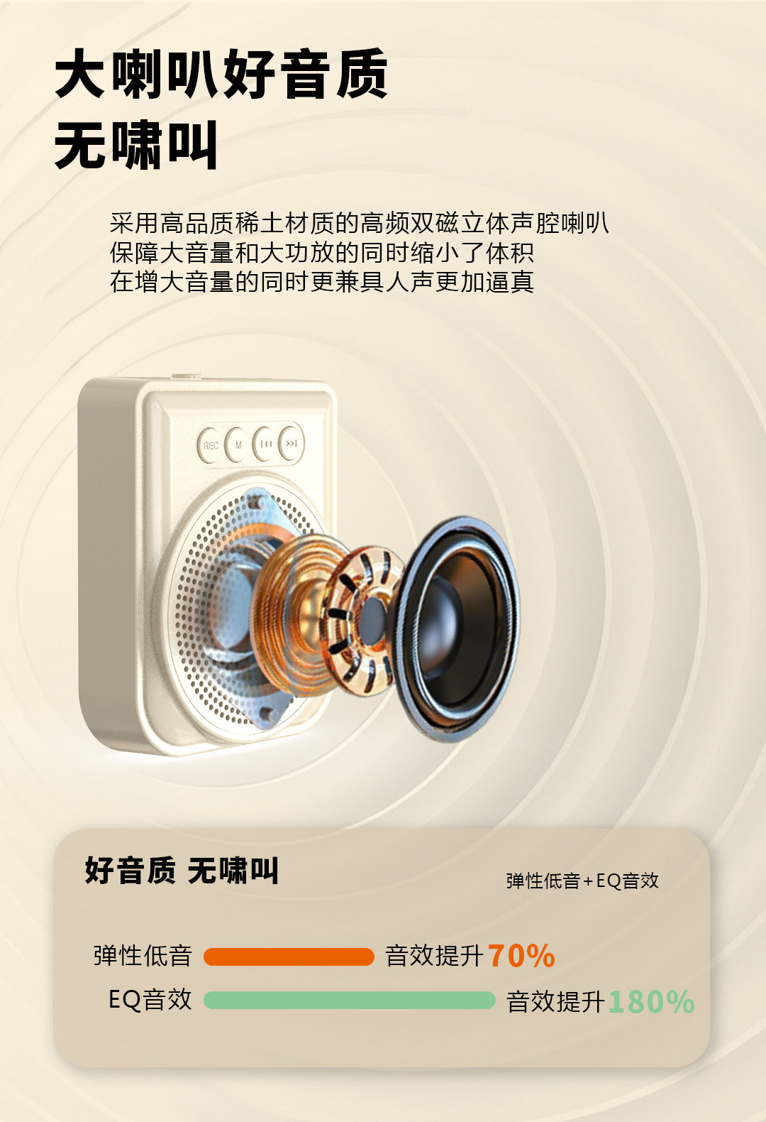 奇声S27電商新製品越境販売用小型拡声器、先生、ガイド、販売員、ショッピングモール向け、腰掛け式携帯型拡声器