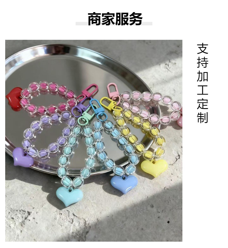 创意爱心串珠手链手机链钥匙扣挂件汽车包包挂饰钥匙链吊坠礼品