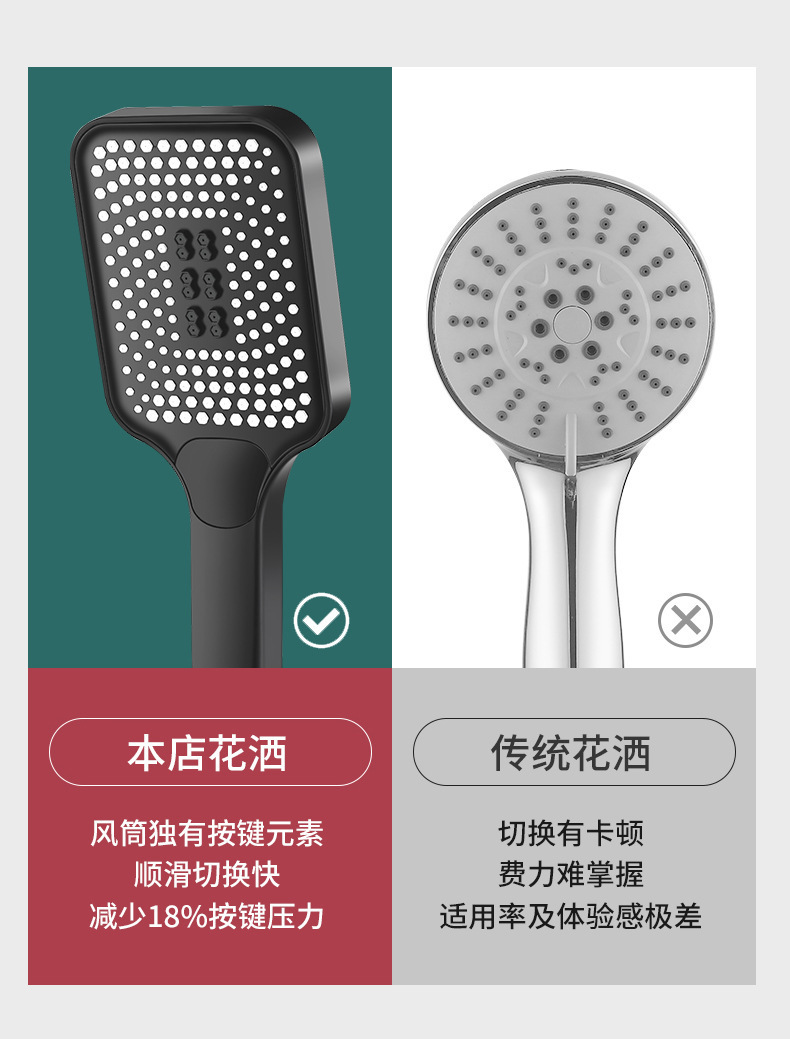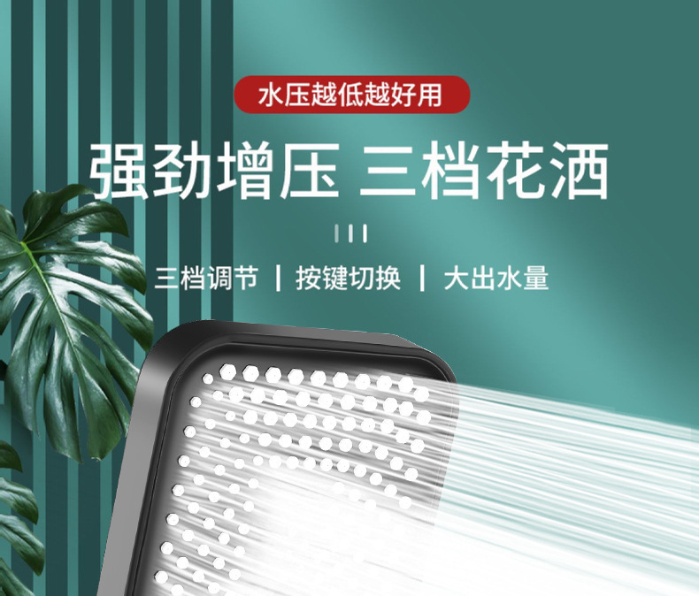 强劲增压花洒喷头浴室洗澡家用方形粗大出水孔手持喷雾莲蓬头套装