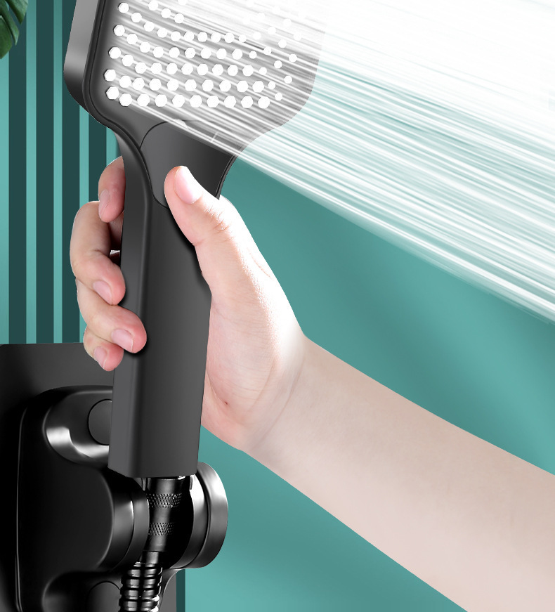 ブラックウォリアー加圧シャワーヘッド 5段階調整 多機能調節可能シャワーヘッドセット 浴室シャワーヘッド