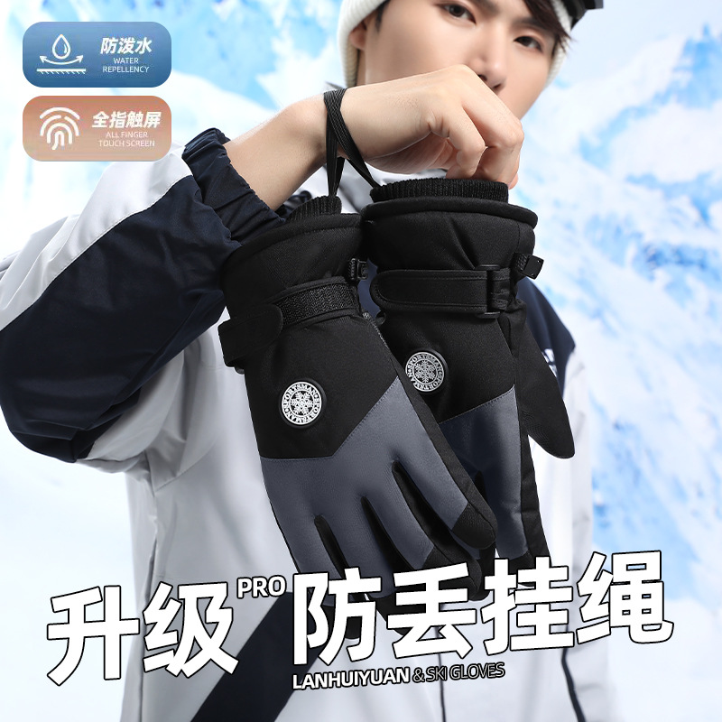 情侣滑雪手套防掉挂绳冬季新款手腕挂绳学生手套可调节长款挂脖绳