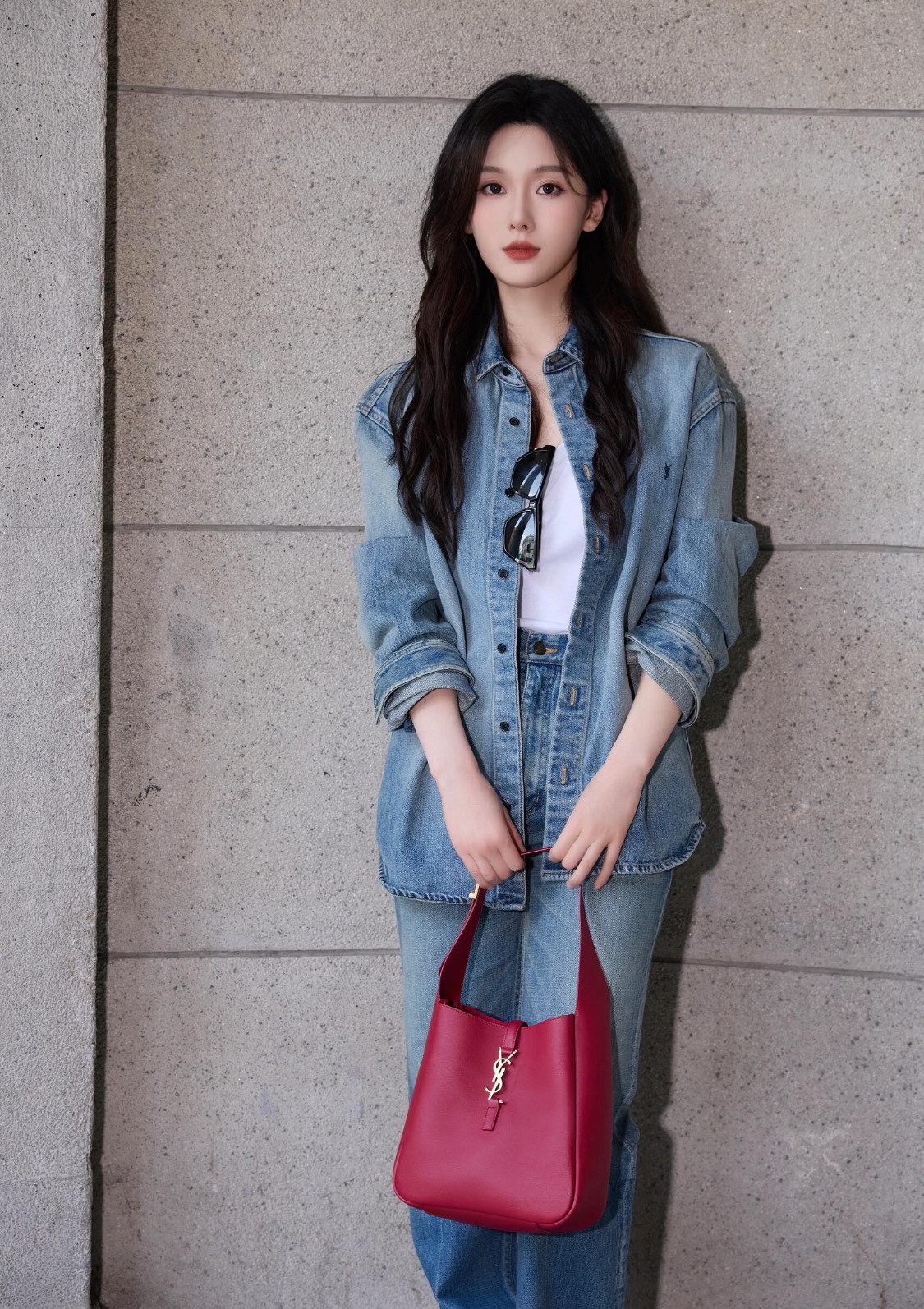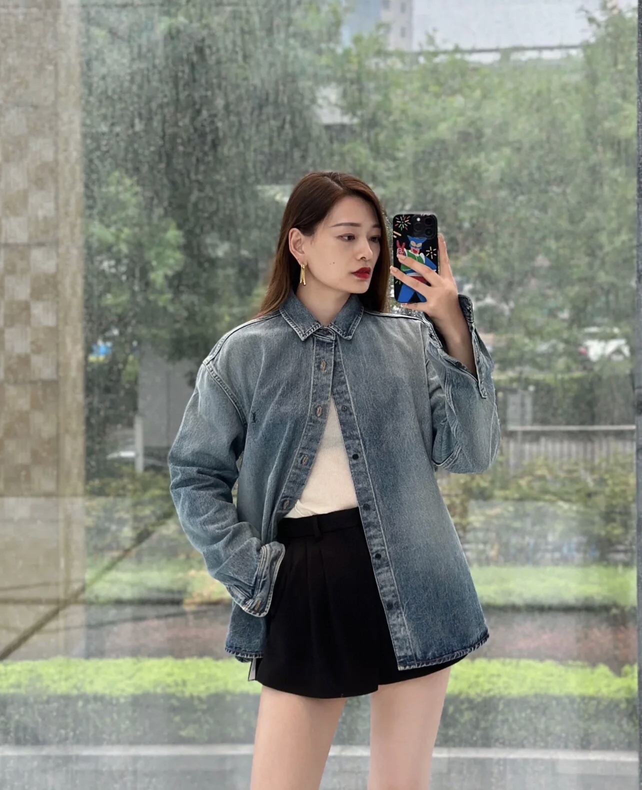 2025新款秋冬字母刺绣长袖牛仔衬衫时尚休闲衬衣潮流帅气男女上衣