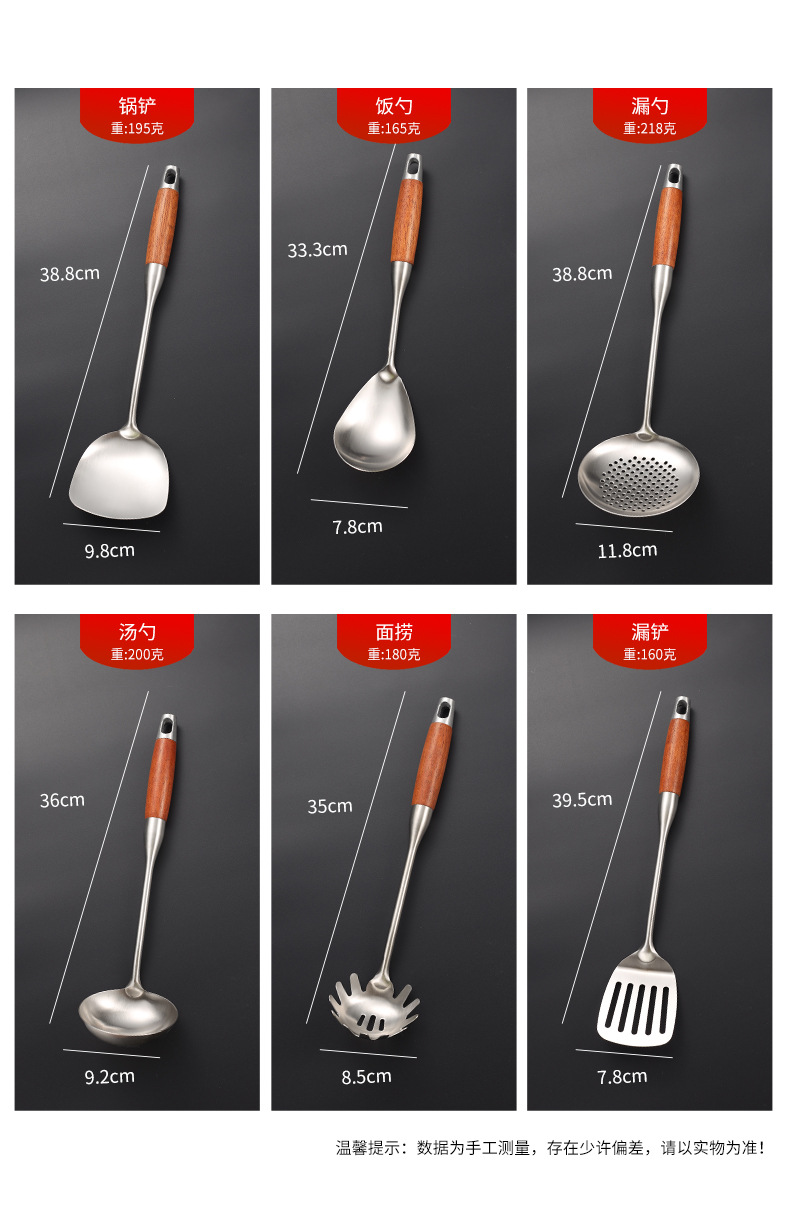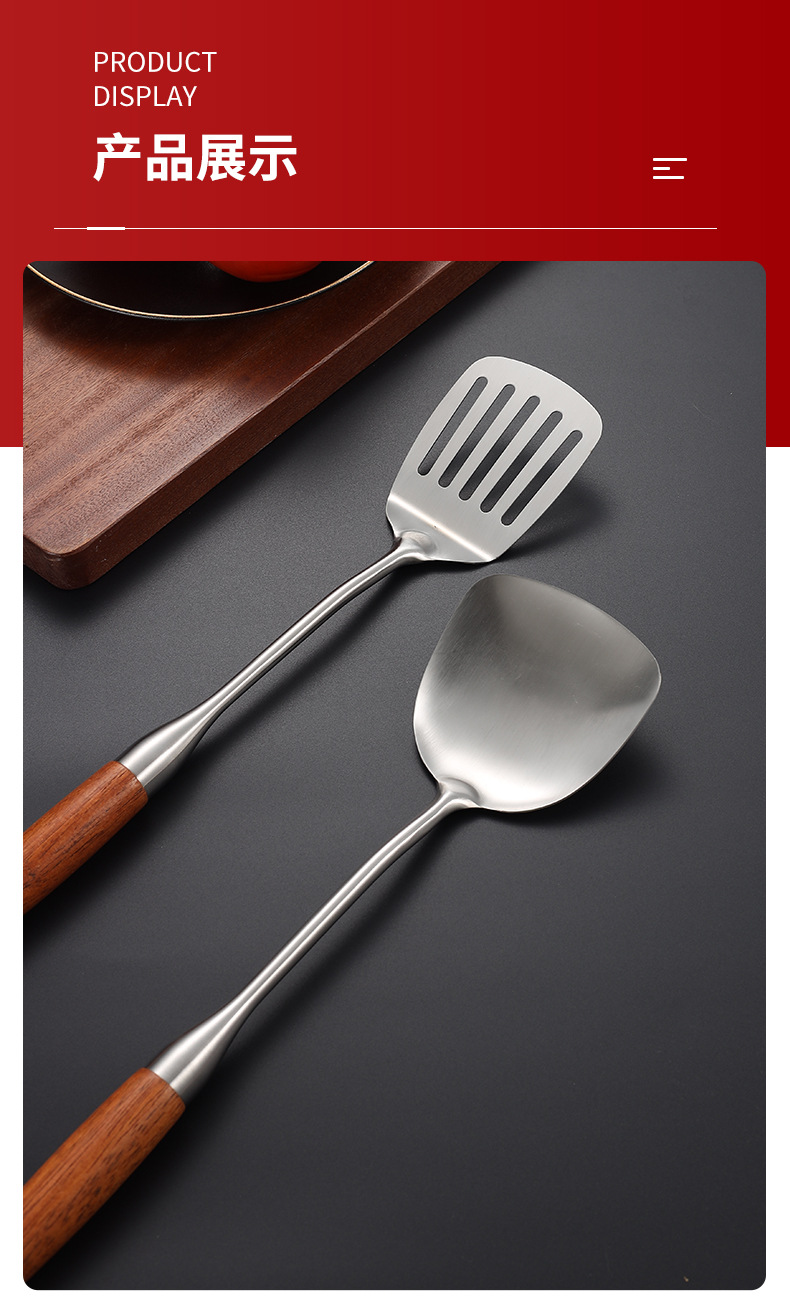 不锈钢锅铲厨具木柄炒菜铲子厨房汤勺漏勺烹饪漏铲防滑耐高温花梨