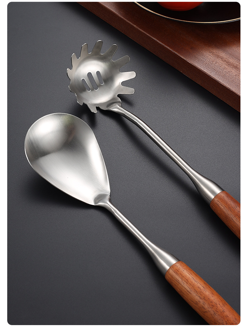 メーカー卸売ローズウッドステンレス鋼シリーズキッチン用品セットスプーンスパチュラセットキッチンデイリーデパート