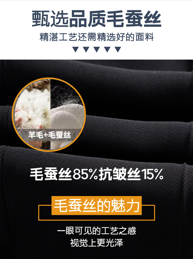 秋冬厚款毛蚕丝双褶休闲西裤男垂顺免烫中老年宽松直筒爸爸西装裤