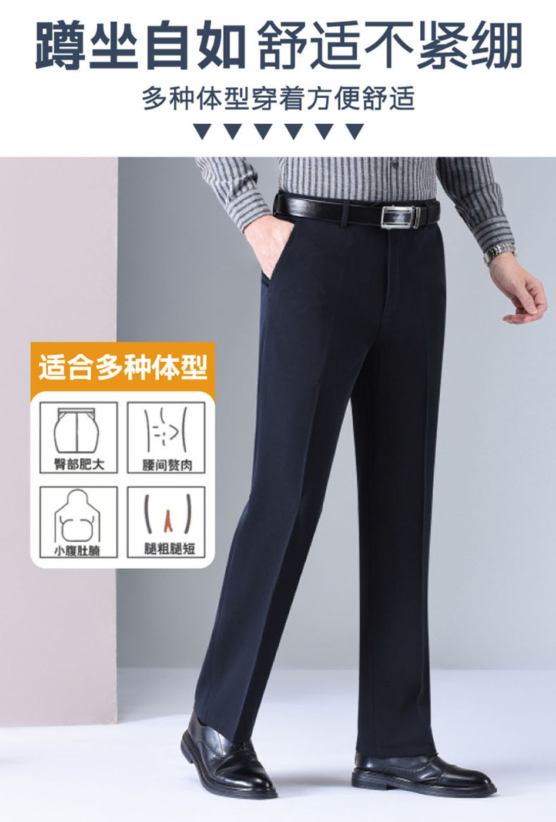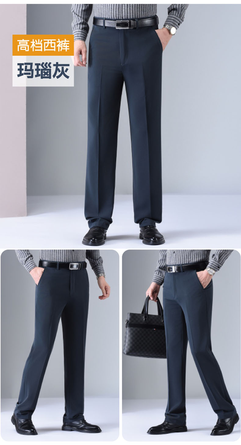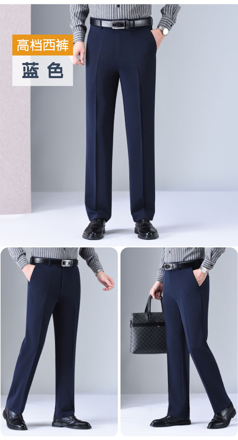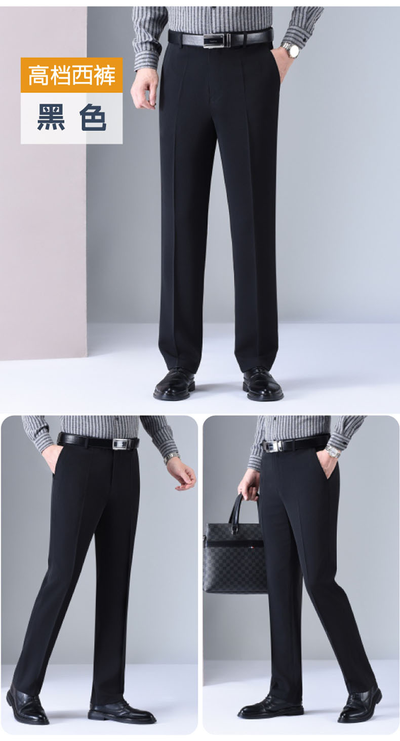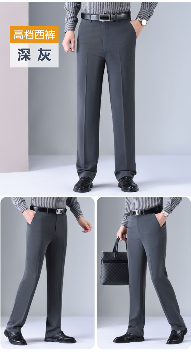 新品中老年正装西裤男中年春秋厚款高腰宽松直筒商务免烫西装裤子