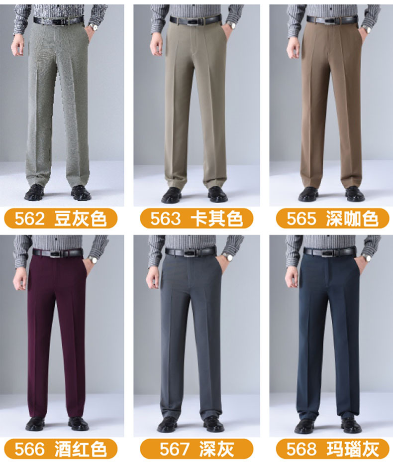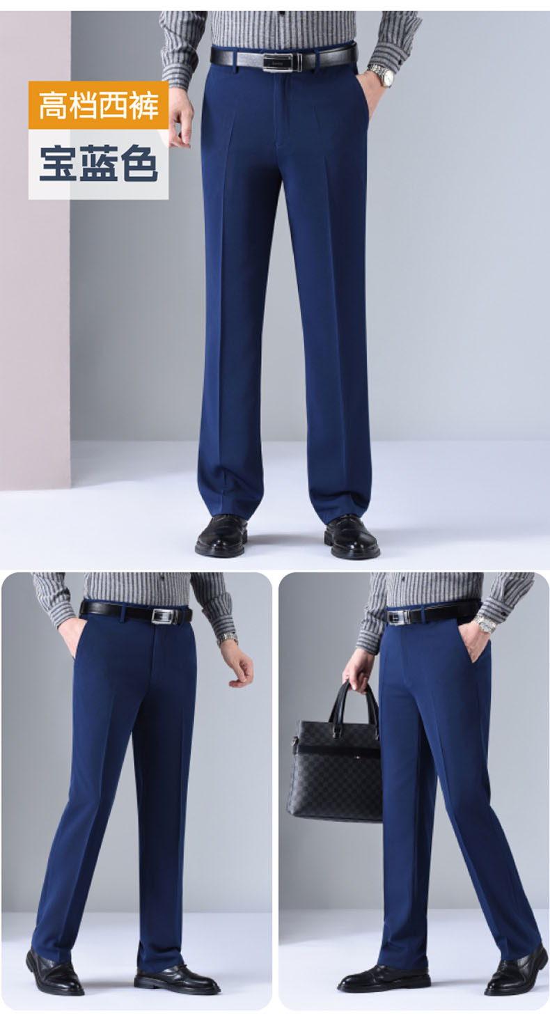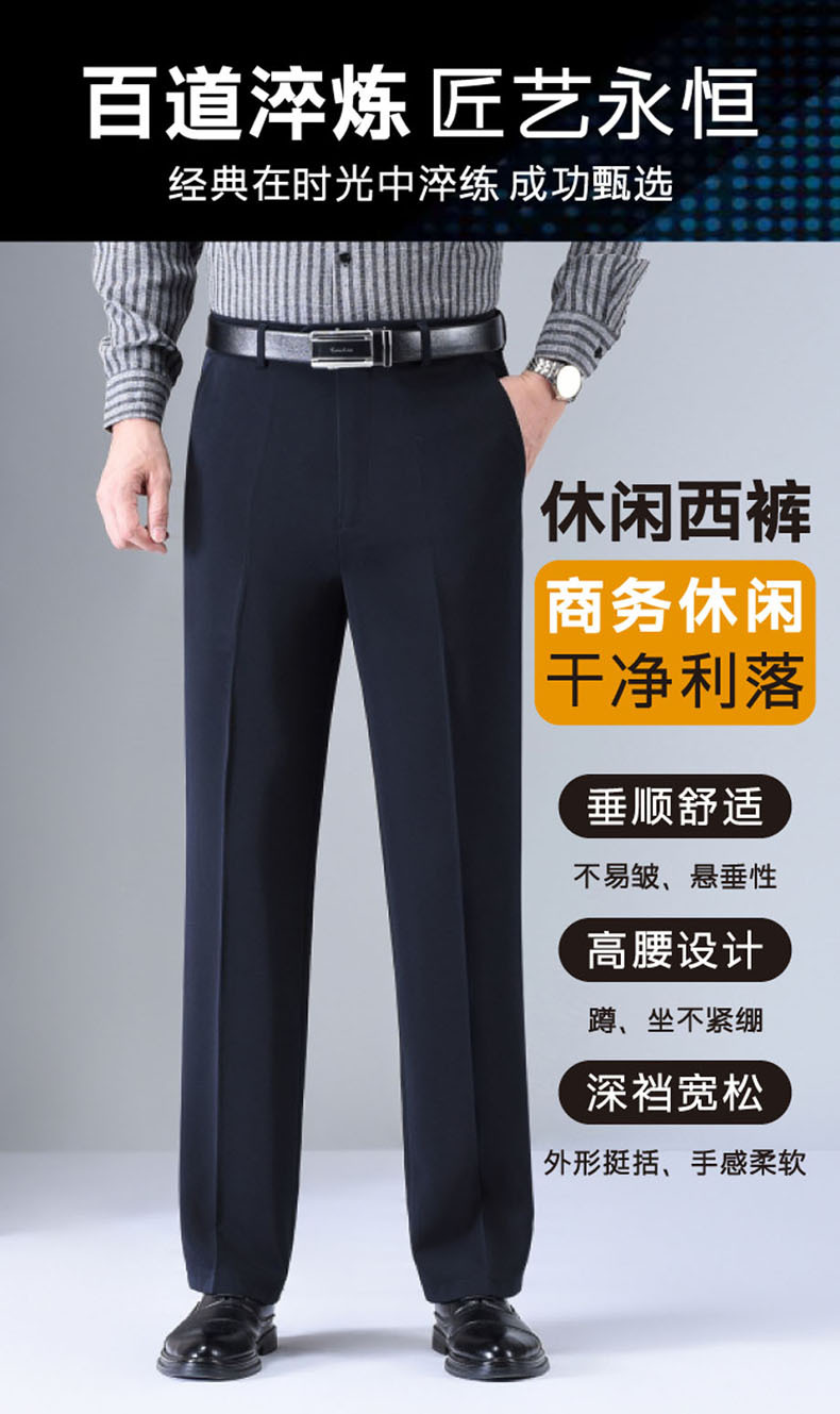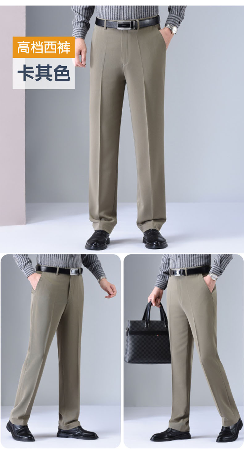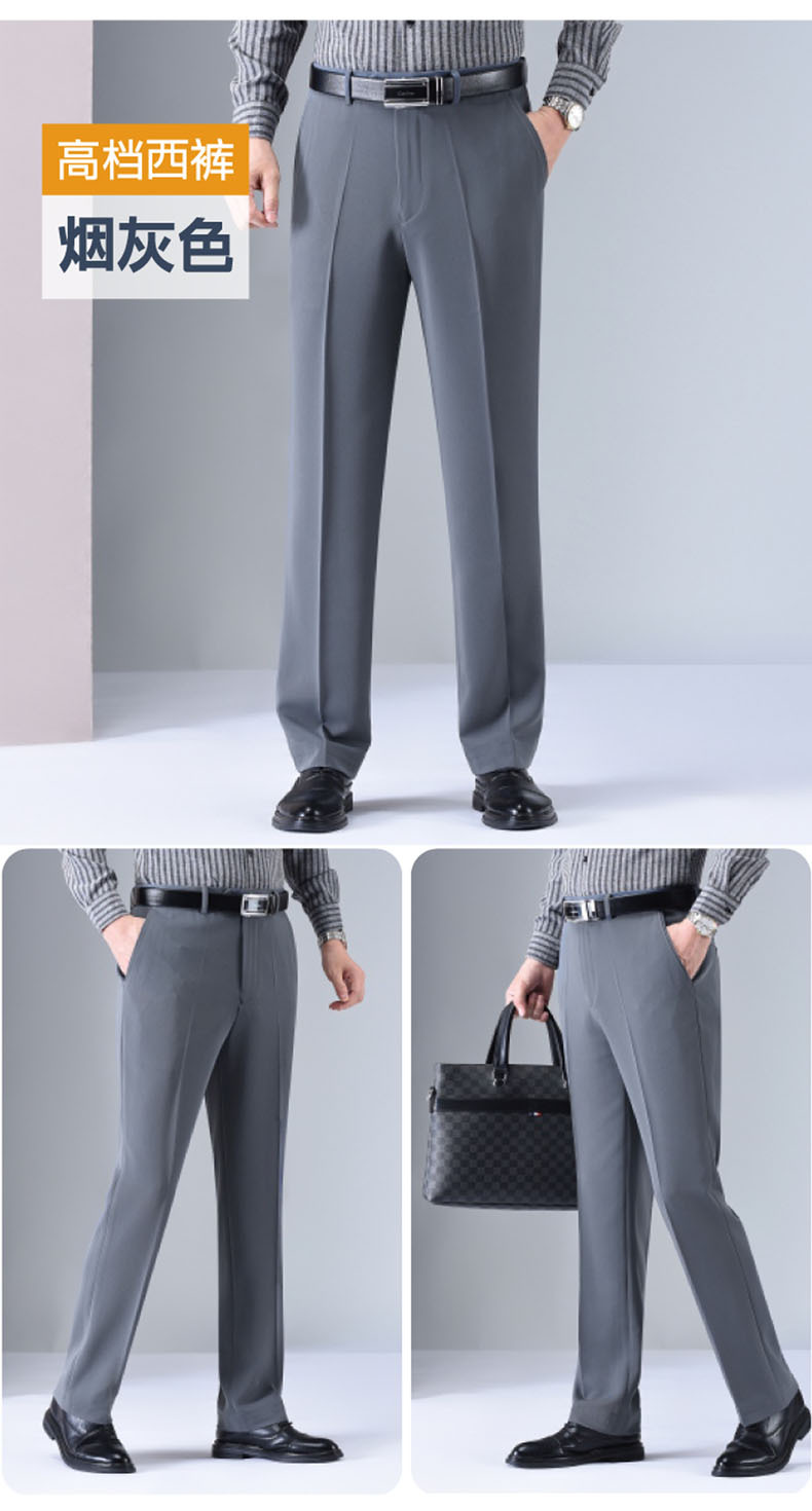 新品中老年正装西裤男中年春秋厚款高腰宽松直筒商务免烫西装裤子