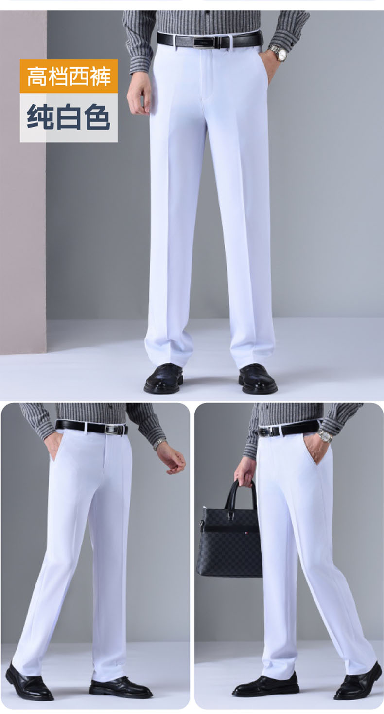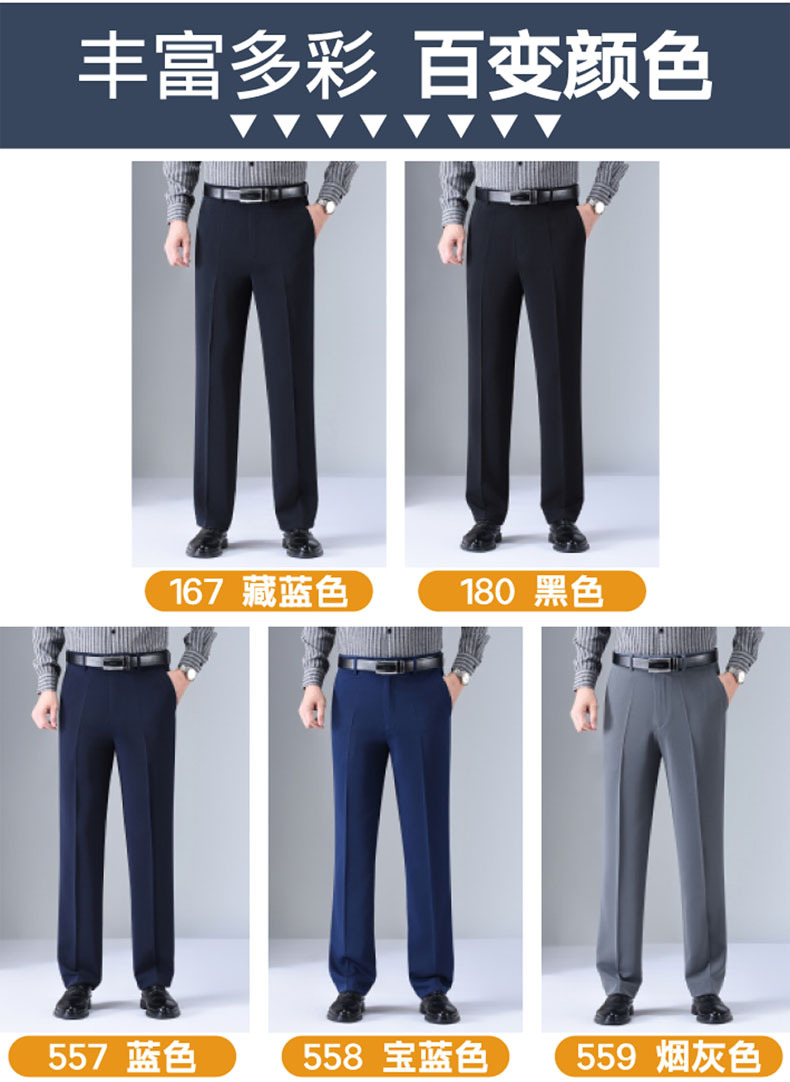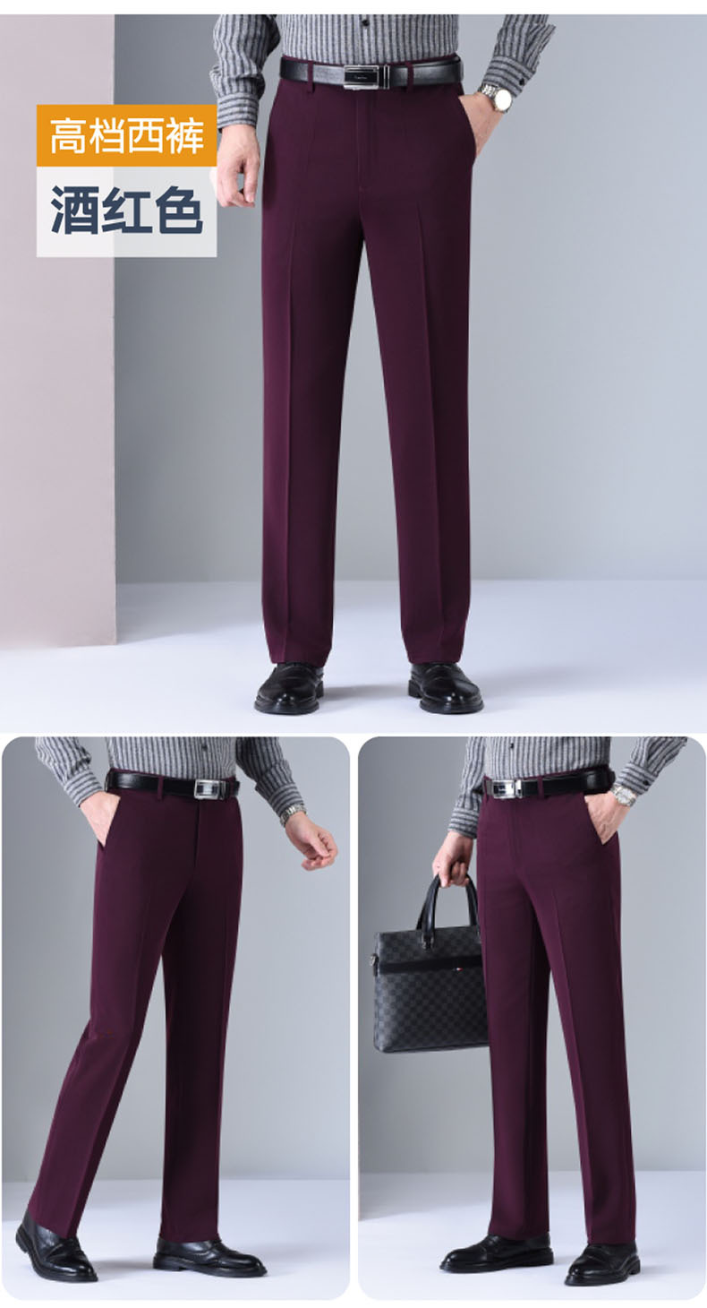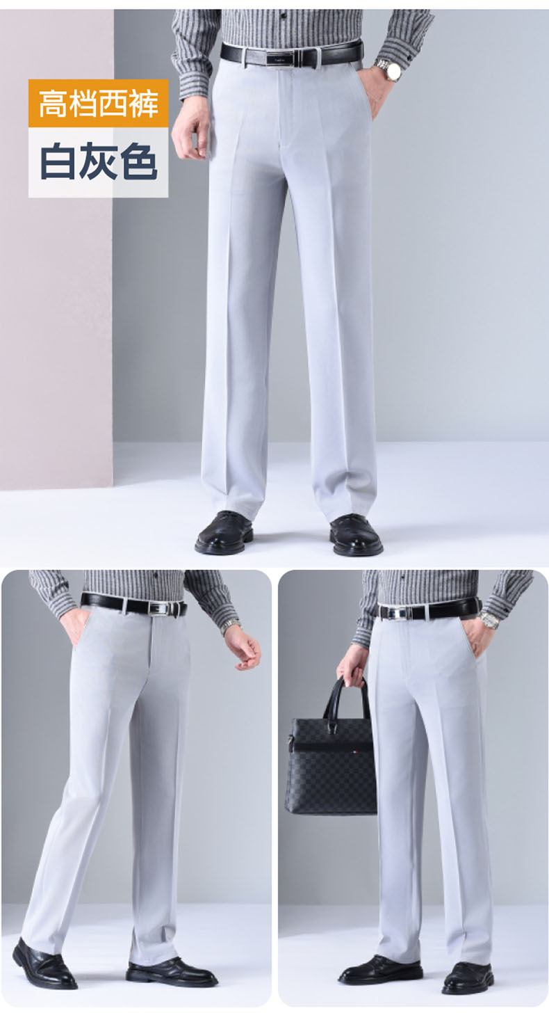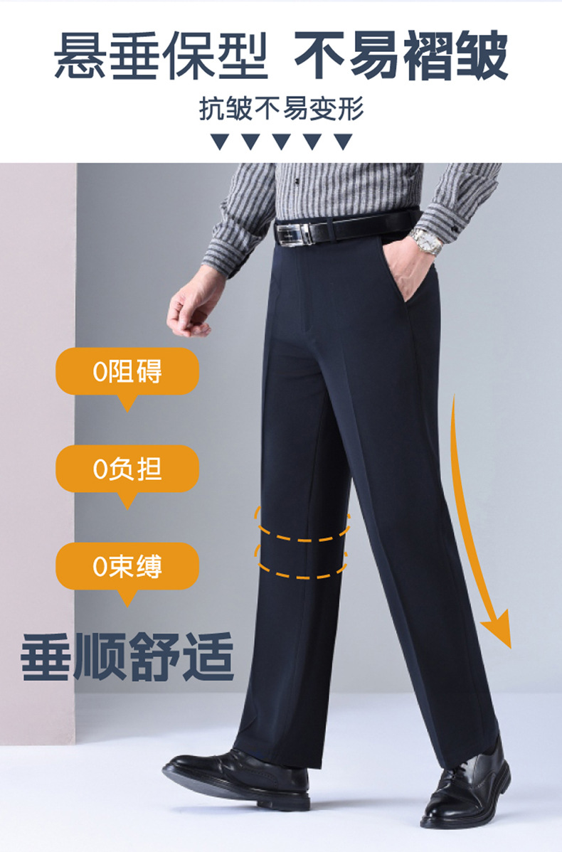 新品中老年正装西裤男中年春秋厚款高腰宽松直筒商务免烫西装裤子