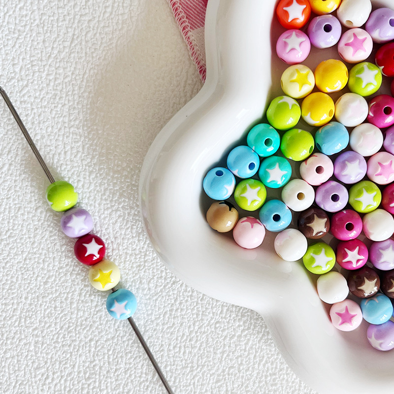二色五角星円珠アクリル油五星直孔通孔珠diyアクセサリー携帯電話チェーン掛け材料