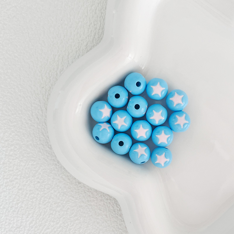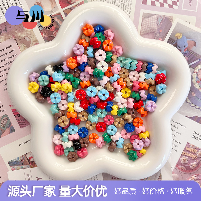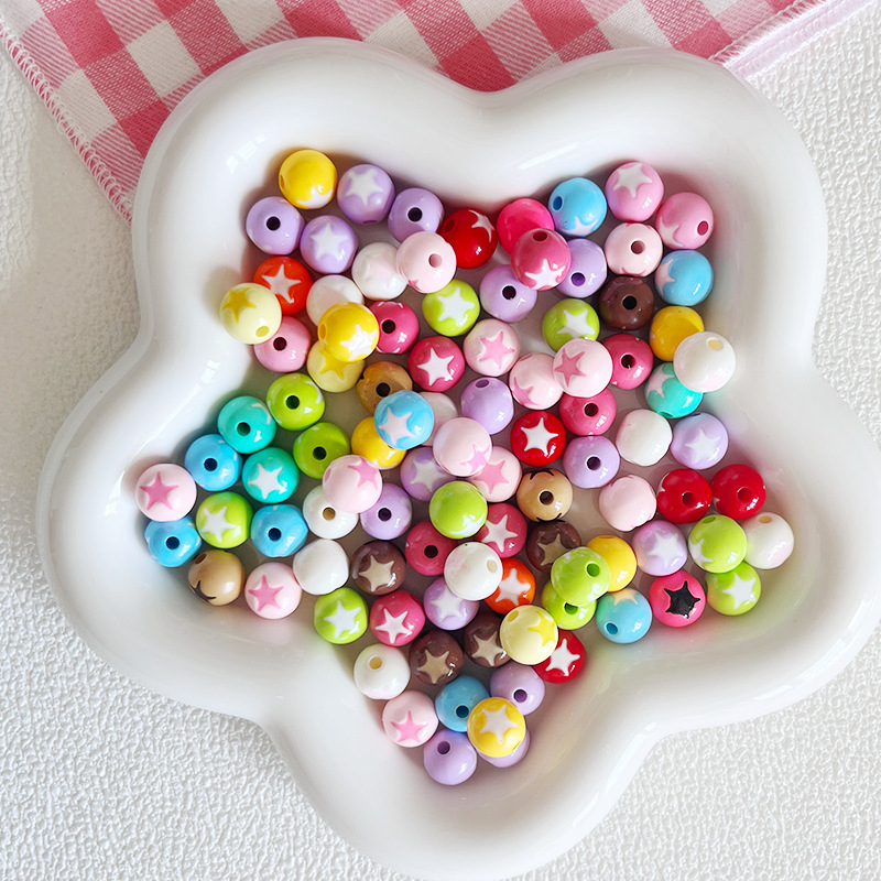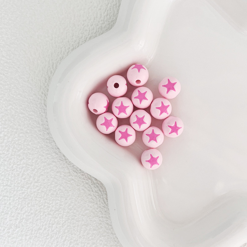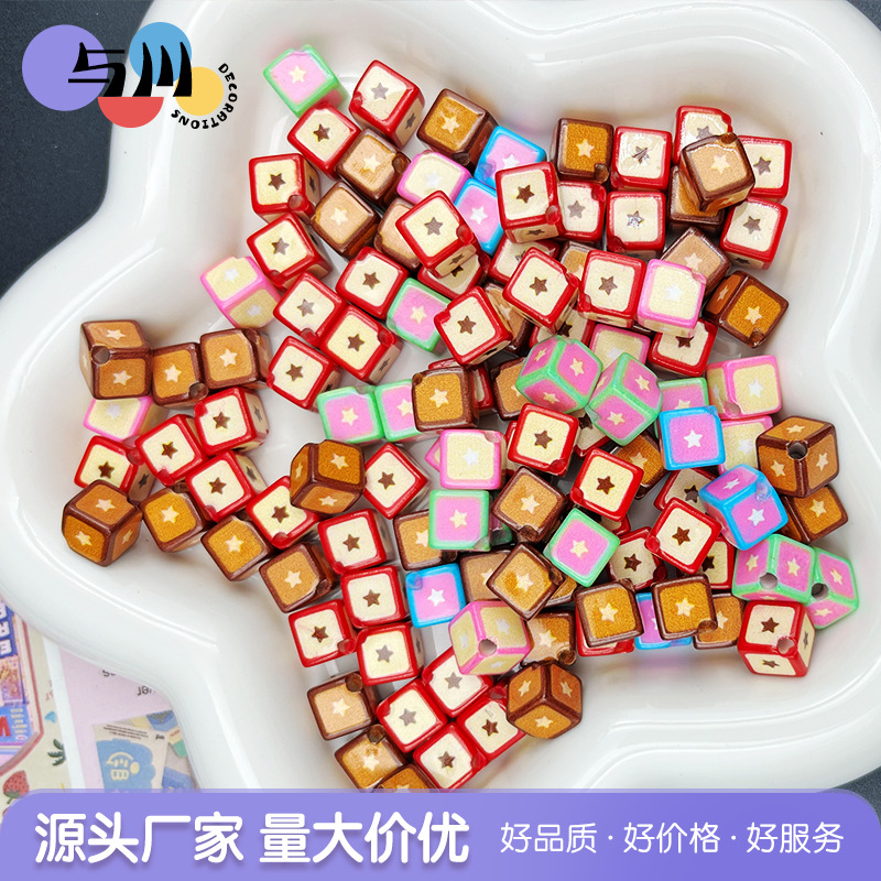 亚克力撞色五角星方块散珠拼色印花小星星diy材料包饰品挂件串珠