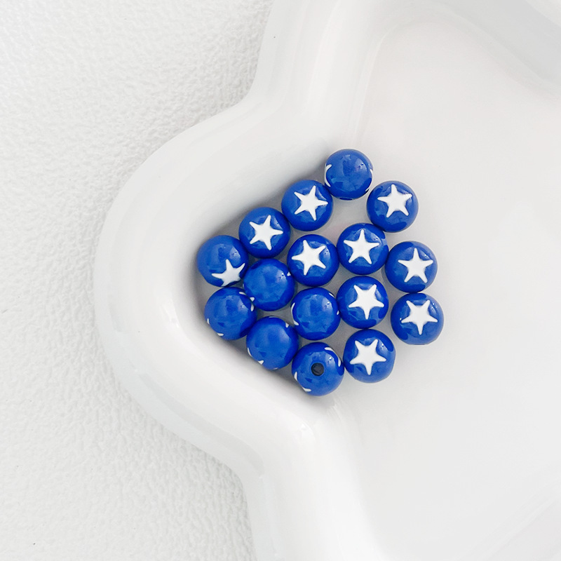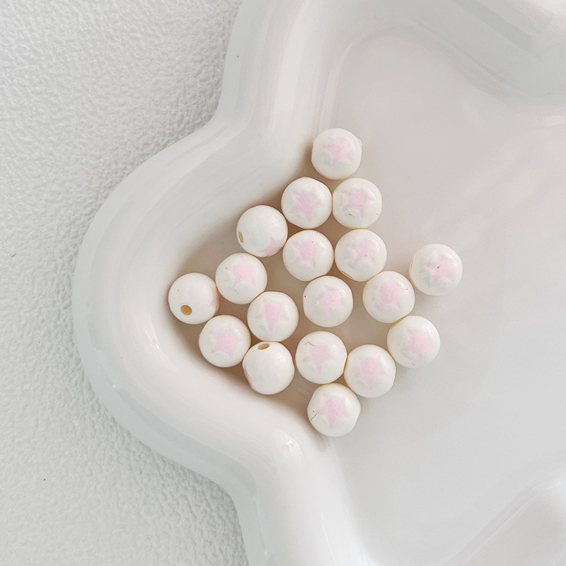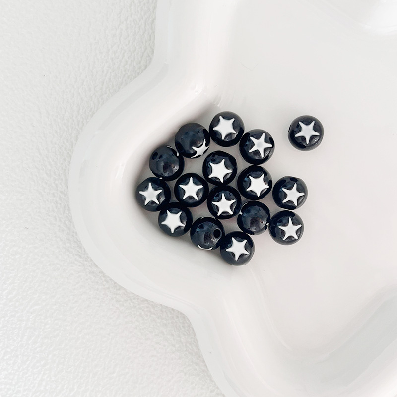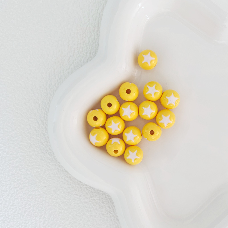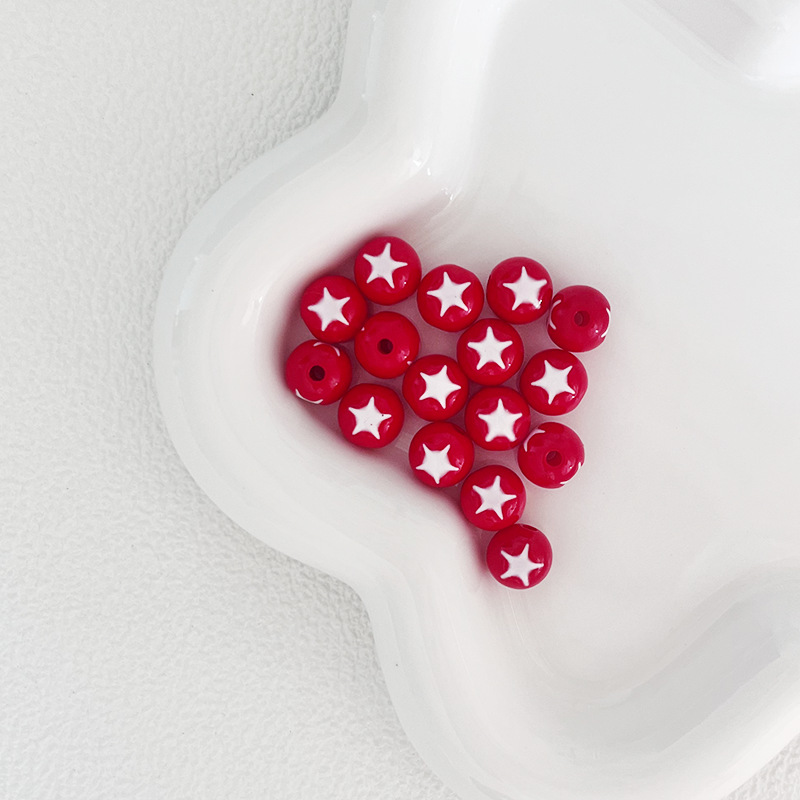 亚克力撞色五角星方块散珠拼色印花小星星diy材料包饰品挂件串珠