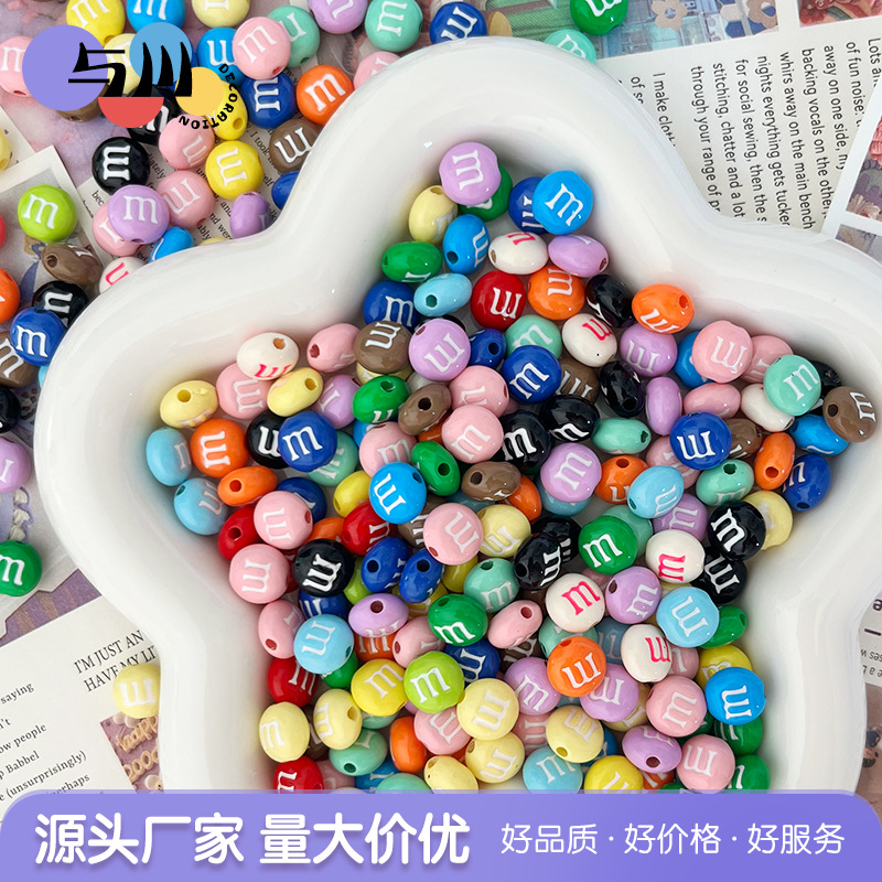 亚克力烤漆字母M豆圆形通孔散珠DIY手工串珠手机链手链挂件配件