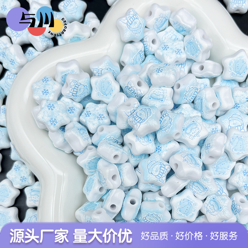 亚克力浮雕雪地涂鸦五角星雪人雪花Kitty串珠diy手机链包挂配件材