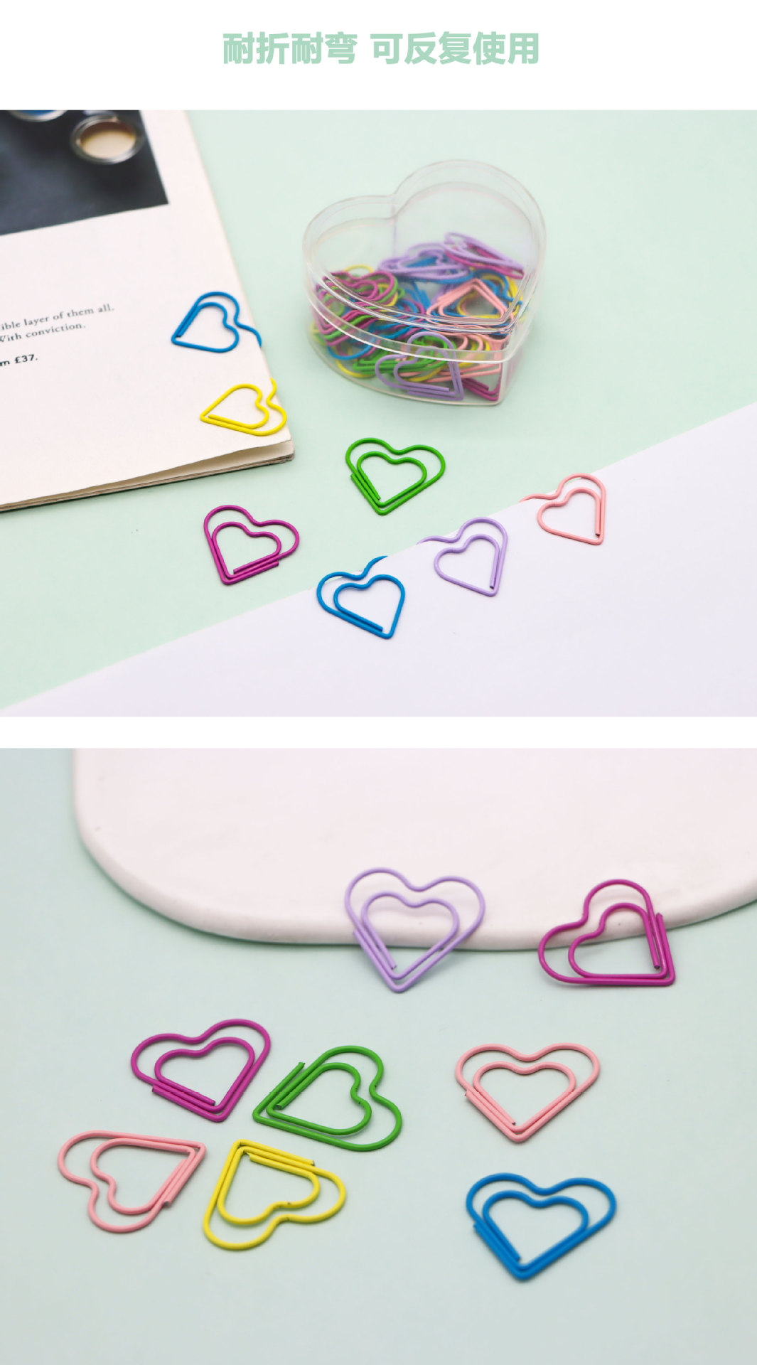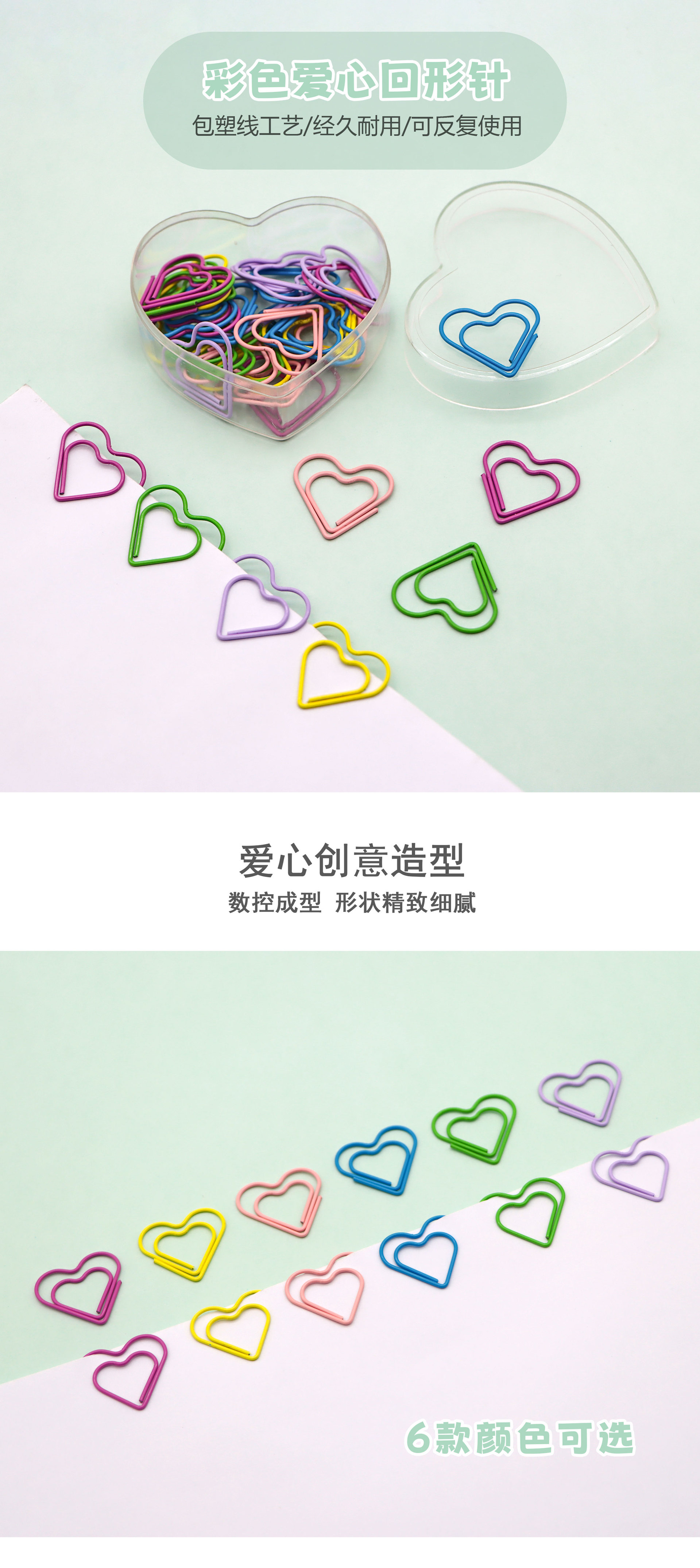 创意彩色爱心心形回形针批发办公金属曲别针可爱异形书签装订文具