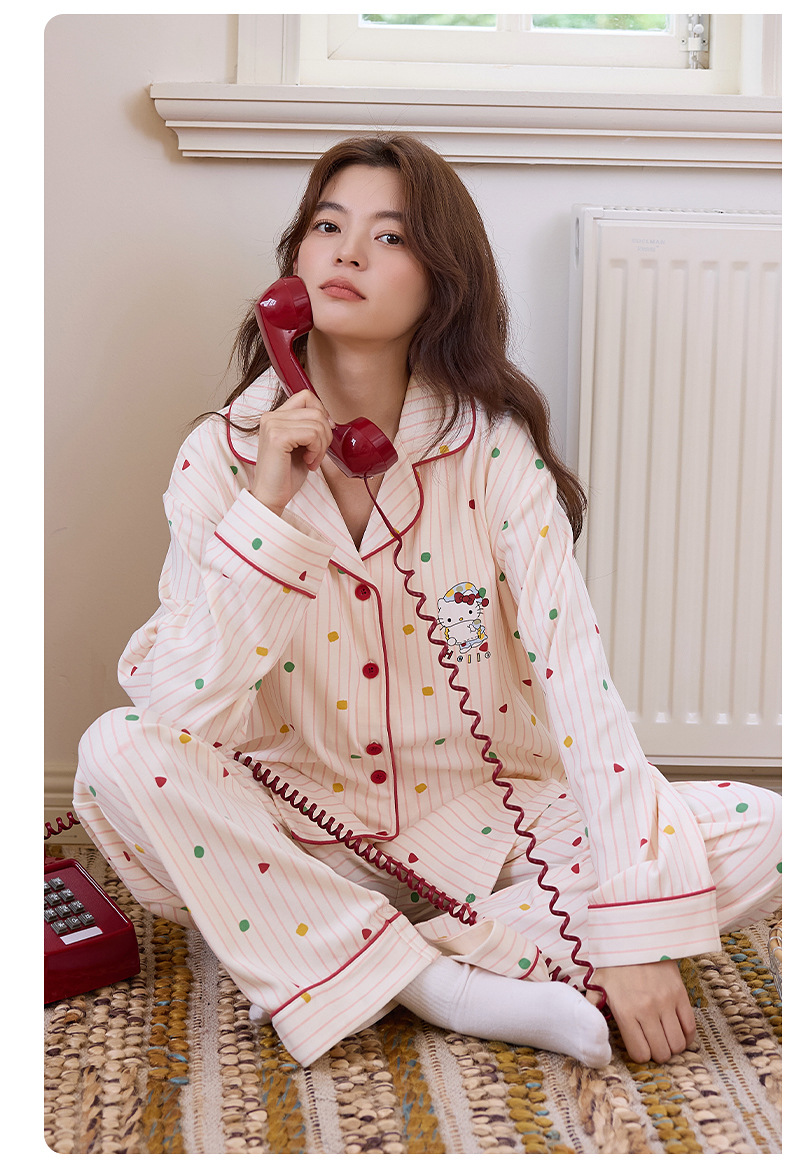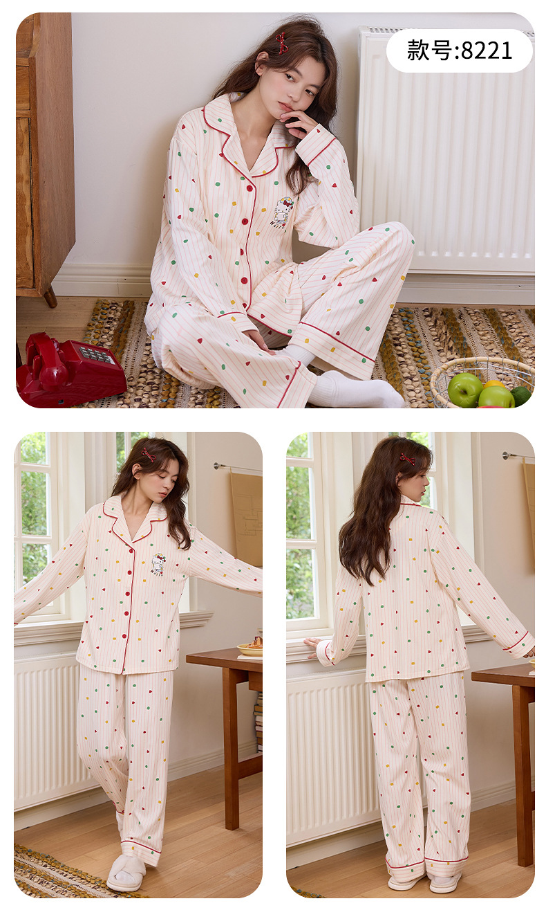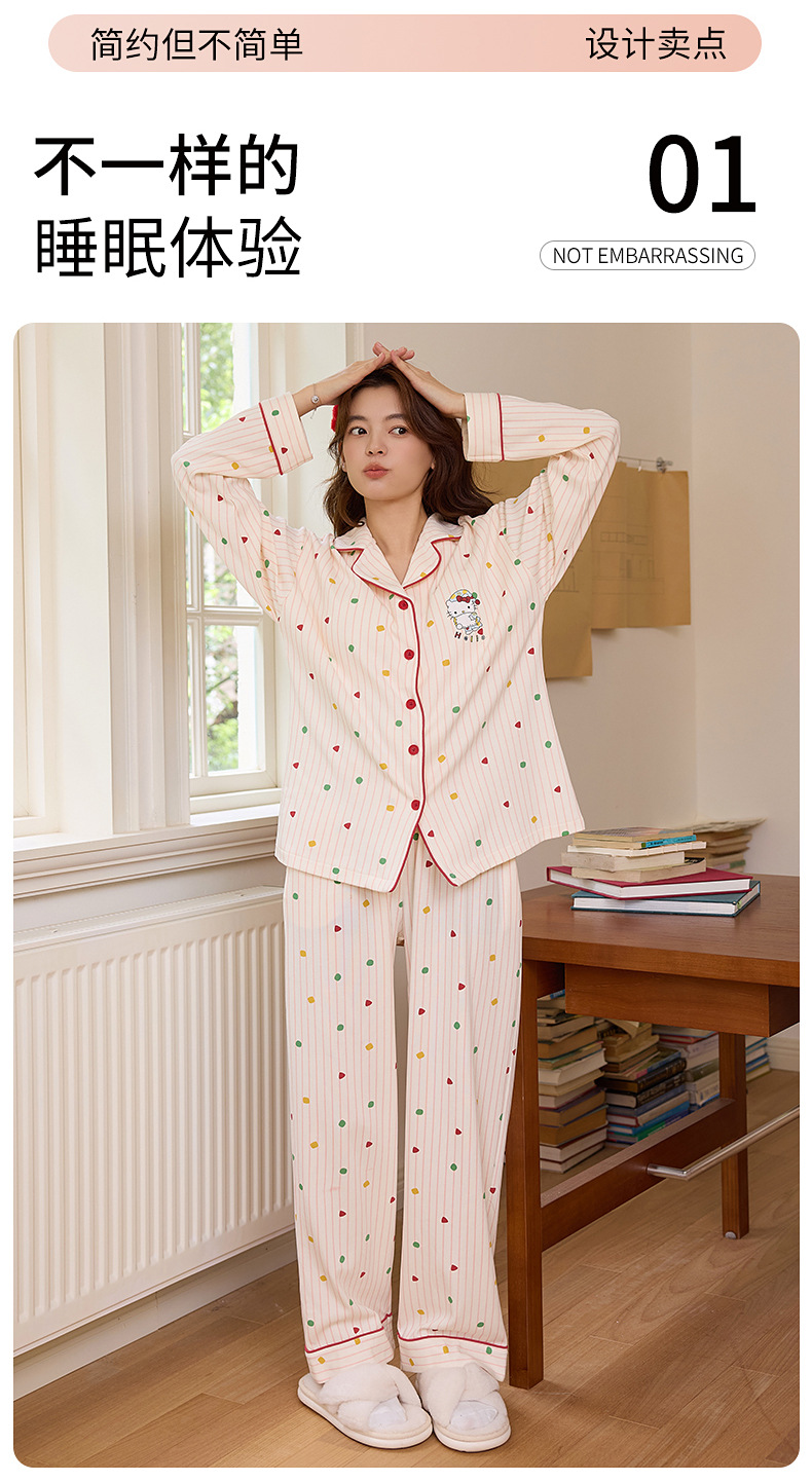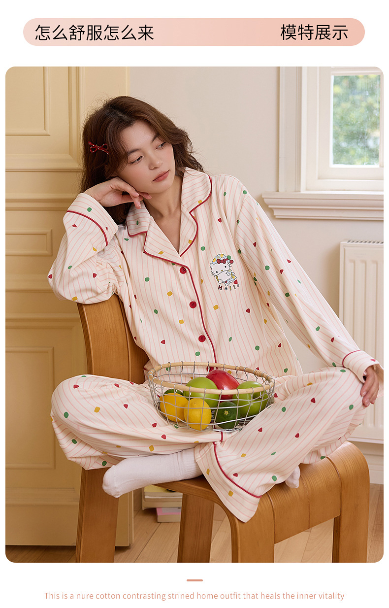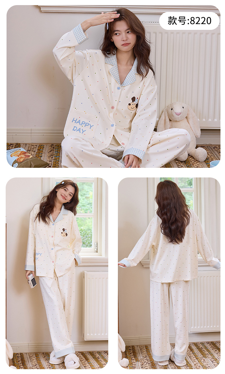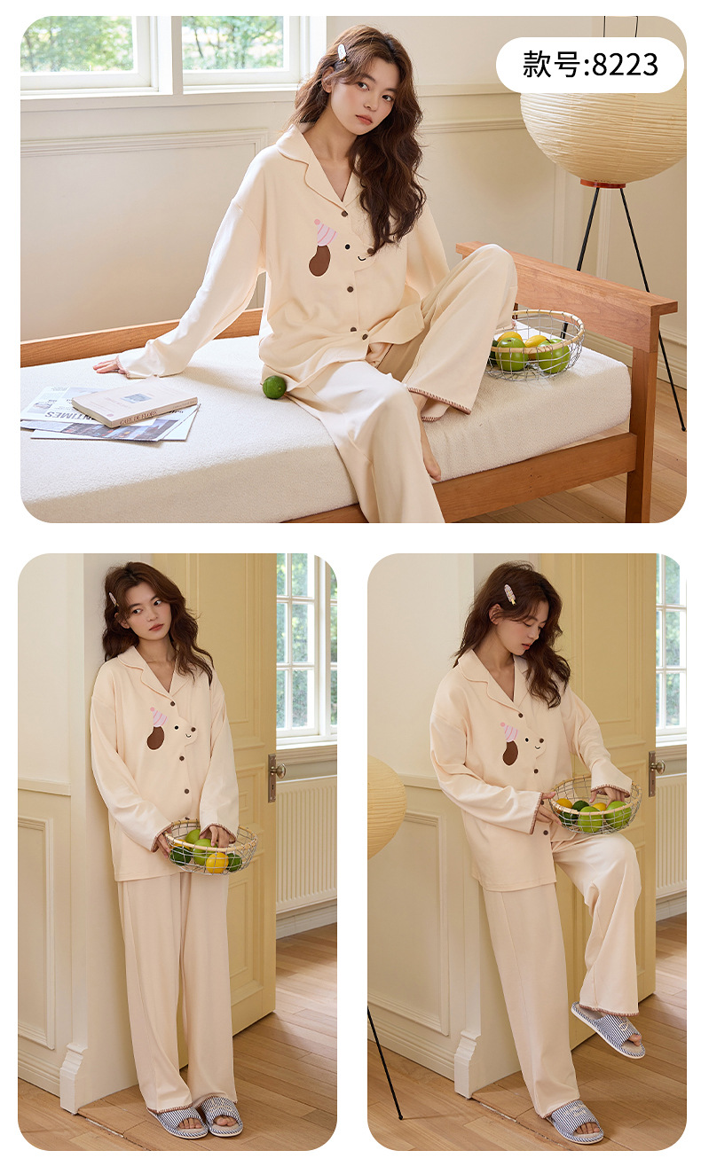 100%纯棉睡衣女士秋冬季长袖开衫少女卡通可外穿全棉家居服女套装