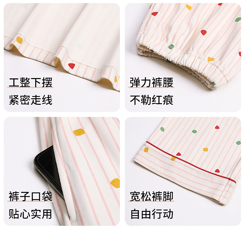 100%全棉睡衣女纯棉柔软舒适翻领条纹秋季长袖长裤女士家居服套装