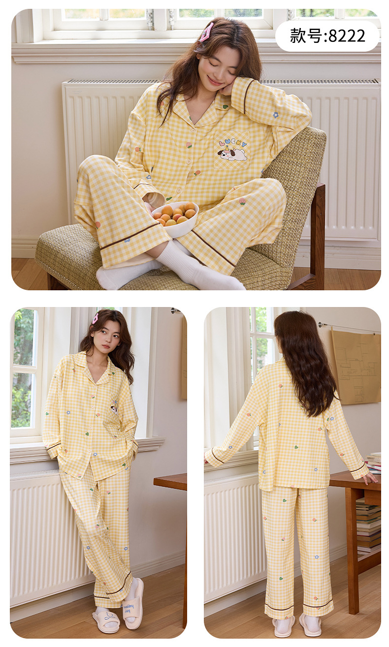 实体批发现货纯棉睡衣长袖长裤春秋季开衫女士直播全棉家居服套装