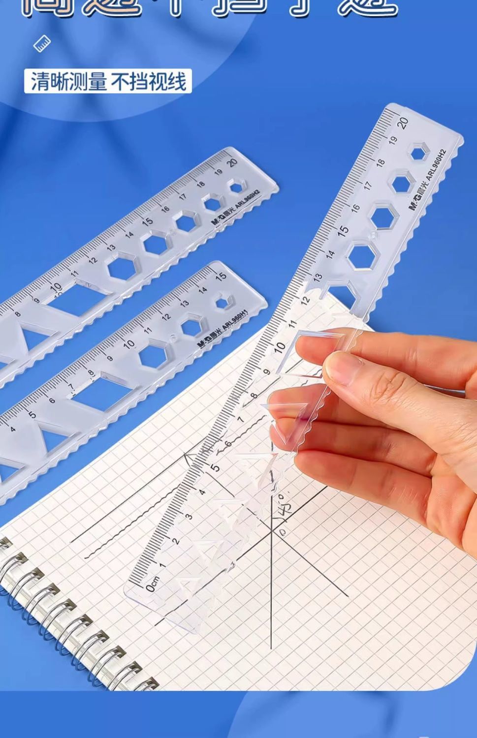 晨光优品系列防粘不沾橡皮套尺学生绘画测量透明多功能尺子960w7