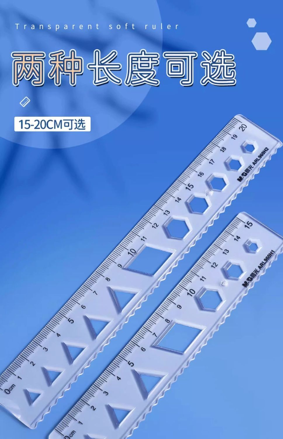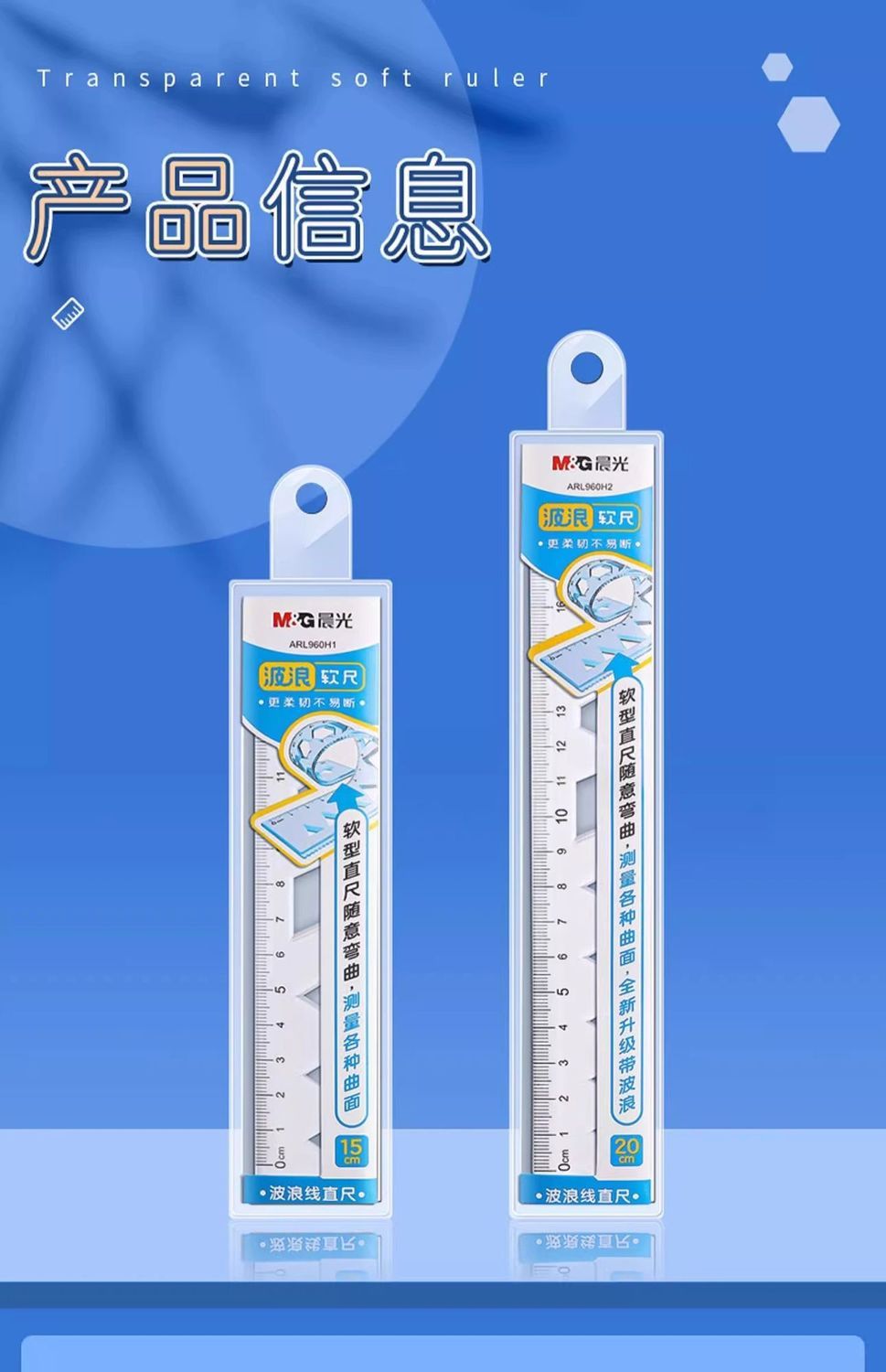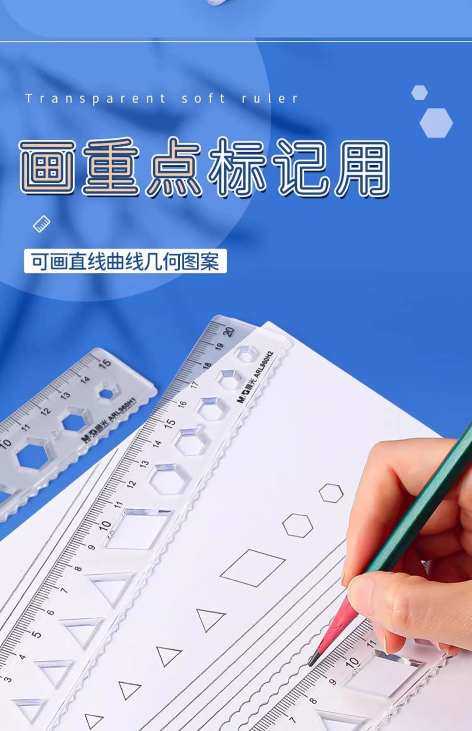晨光透明安全不断软直尺15/20CM尺子学生考试波浪尺绘图测量软尺